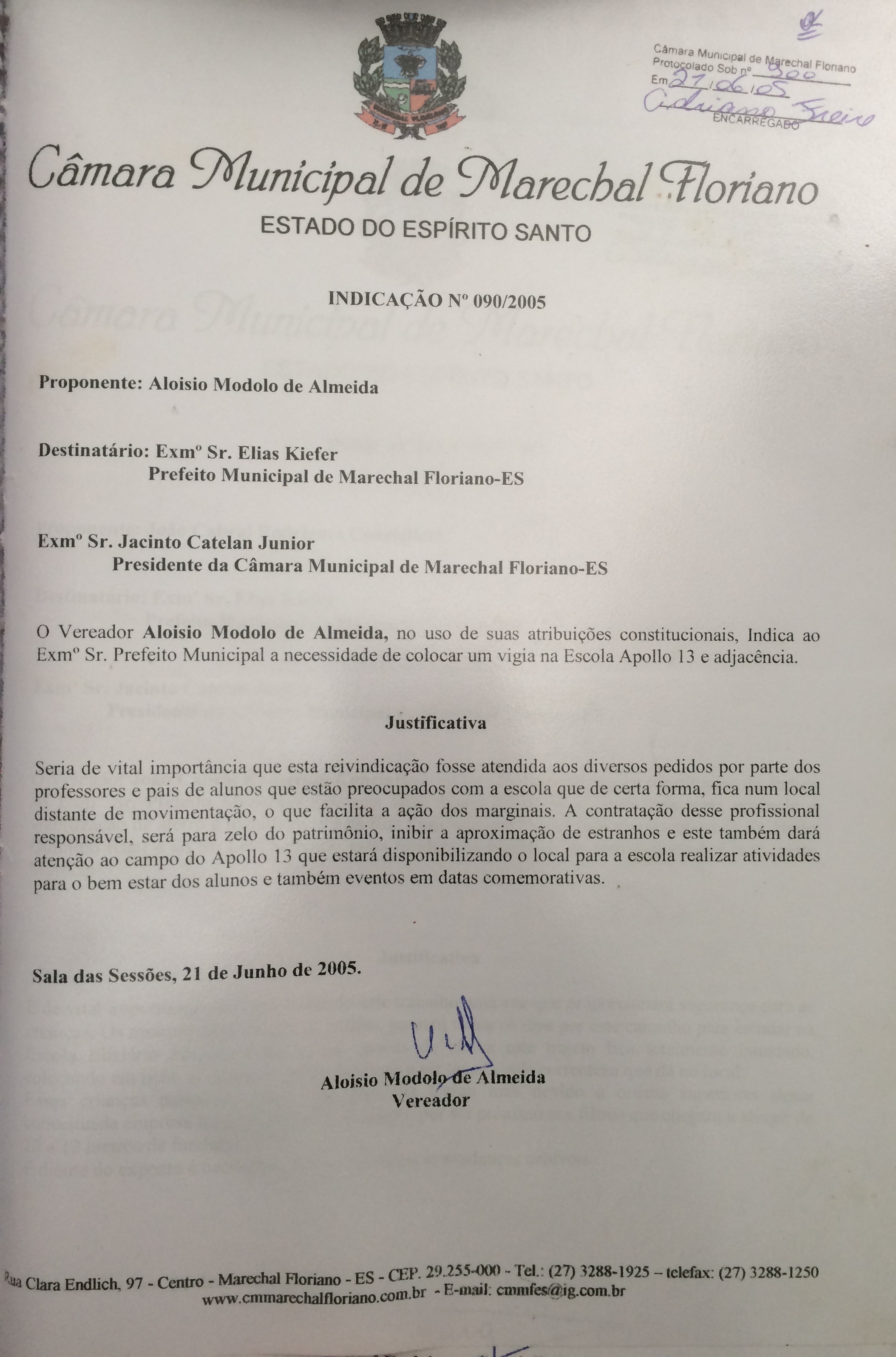 Ementa: INDICA A NECESSIDADE DE COLOCAR UM VIGIA NA ESCOLA APOLLO 13 E ADJACÊNCIA.
