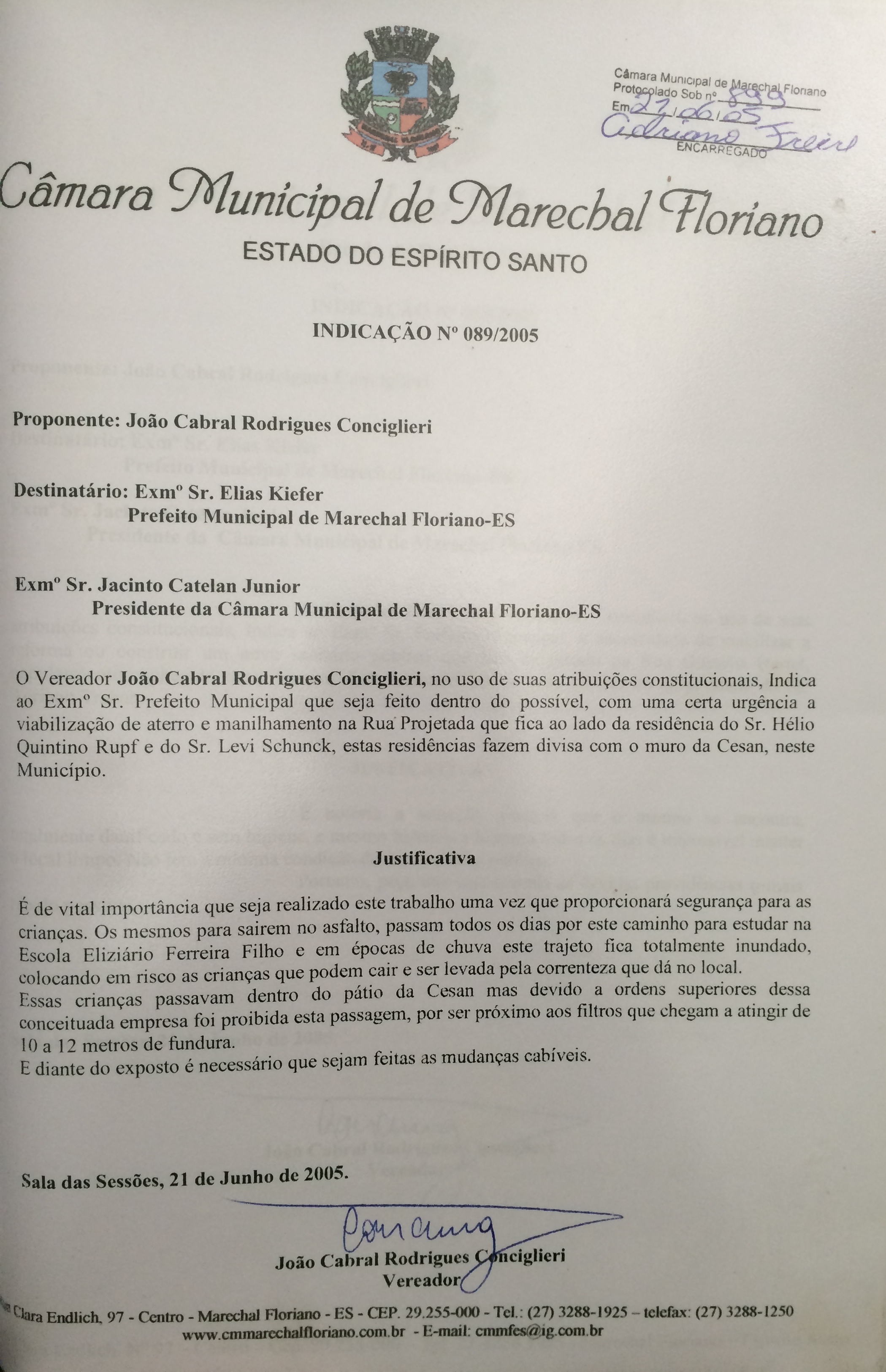 Ementa: INDICA QUE SEJA FEITO DENTRO DO POSSÍVEL, COM UMA CERTA URGÊNCIA A VIABILIZAÇÃO DE ATERRO E MANILHAMENTO NA RUA PROJETADA QUE FICA AO LADO DA RESIDÊNCIA DO SR. HÉLIO QUINTINO RUPF E DO SR. LEVI SCHUNCK, ESTAS RESIDÊNCIAS FAZEM DIVISA COM O MURO DA CESAN, NESTE MUNICÍPIO.