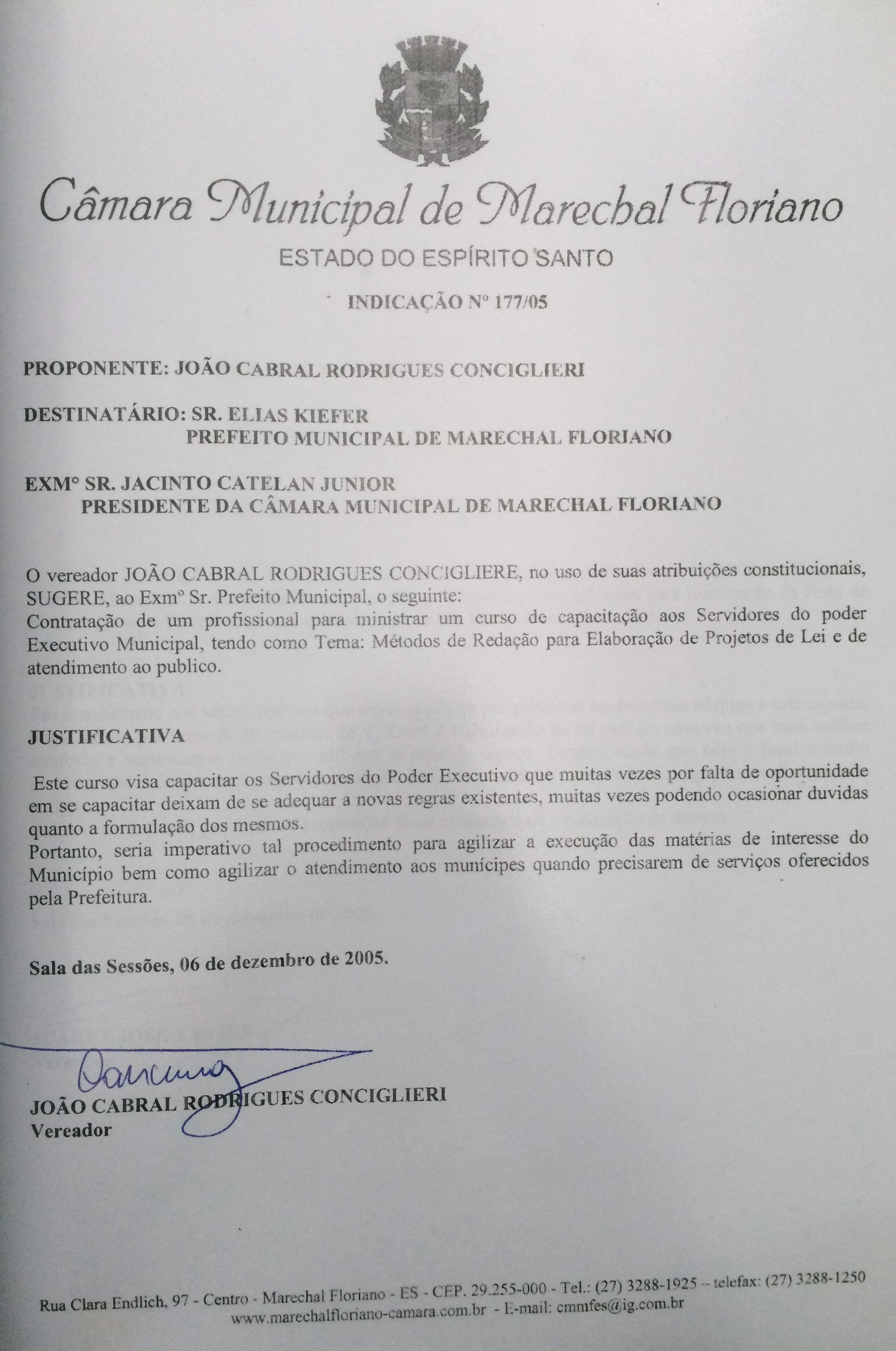 Ementa: INDICA A CONTRATAÇÃO DE UM PROFISSIONAL PARA MINISTRAR CURSO DE CAPACITAÇÃO AOS SERVIDORES DO PODER EXECUTIVO MUNICIPAL.