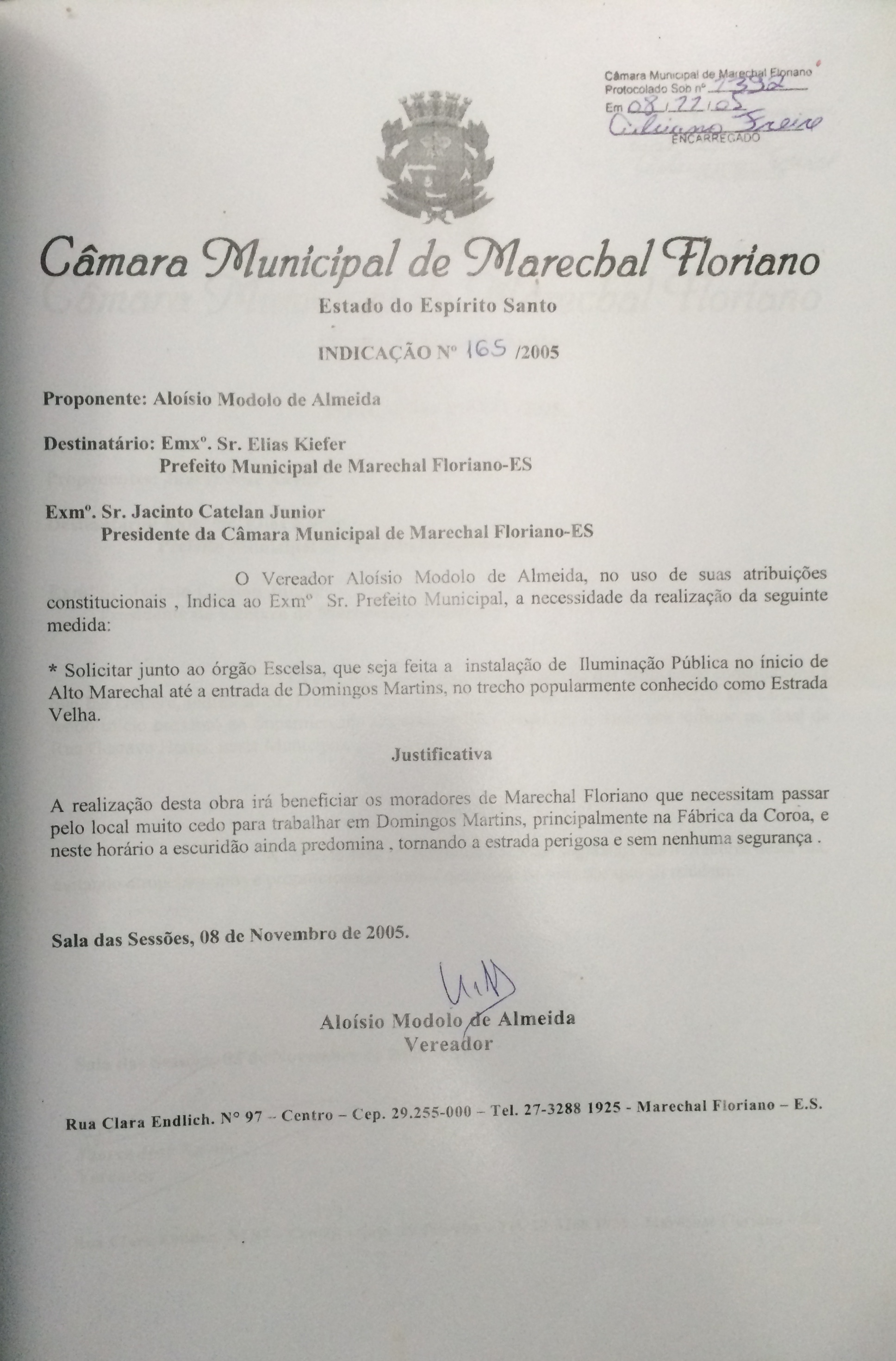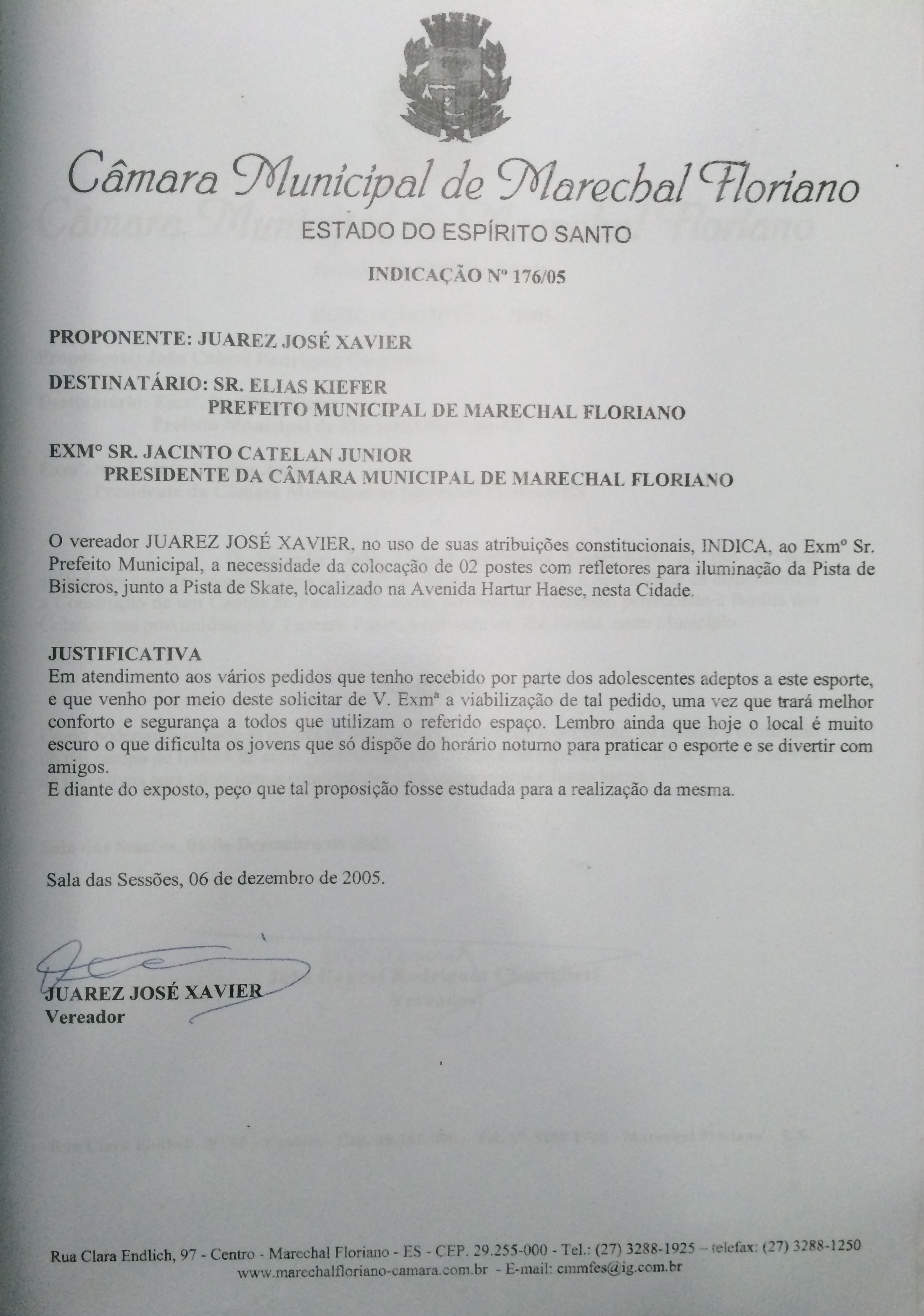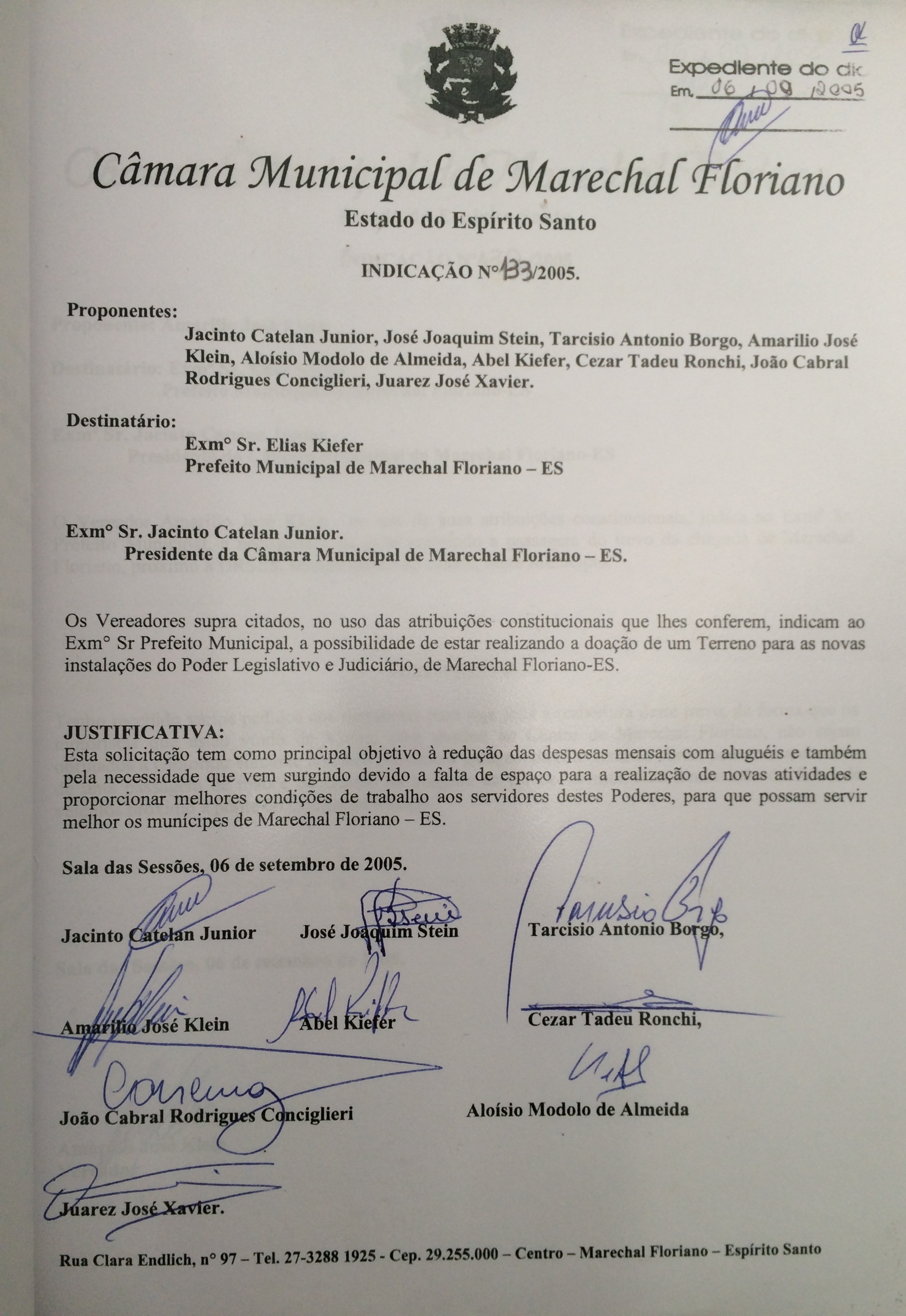 Ementa: INDICA A POSSIBILIDADE DE ESTAR REALIZADO A DOAÇÃO DE UM TERRENO PARA AS NOVAS INSTALAÇÕES DO PODER LEGISLATIVO E JUDICIÁRIO, DE MARECHAL FLORIANO-ES.
