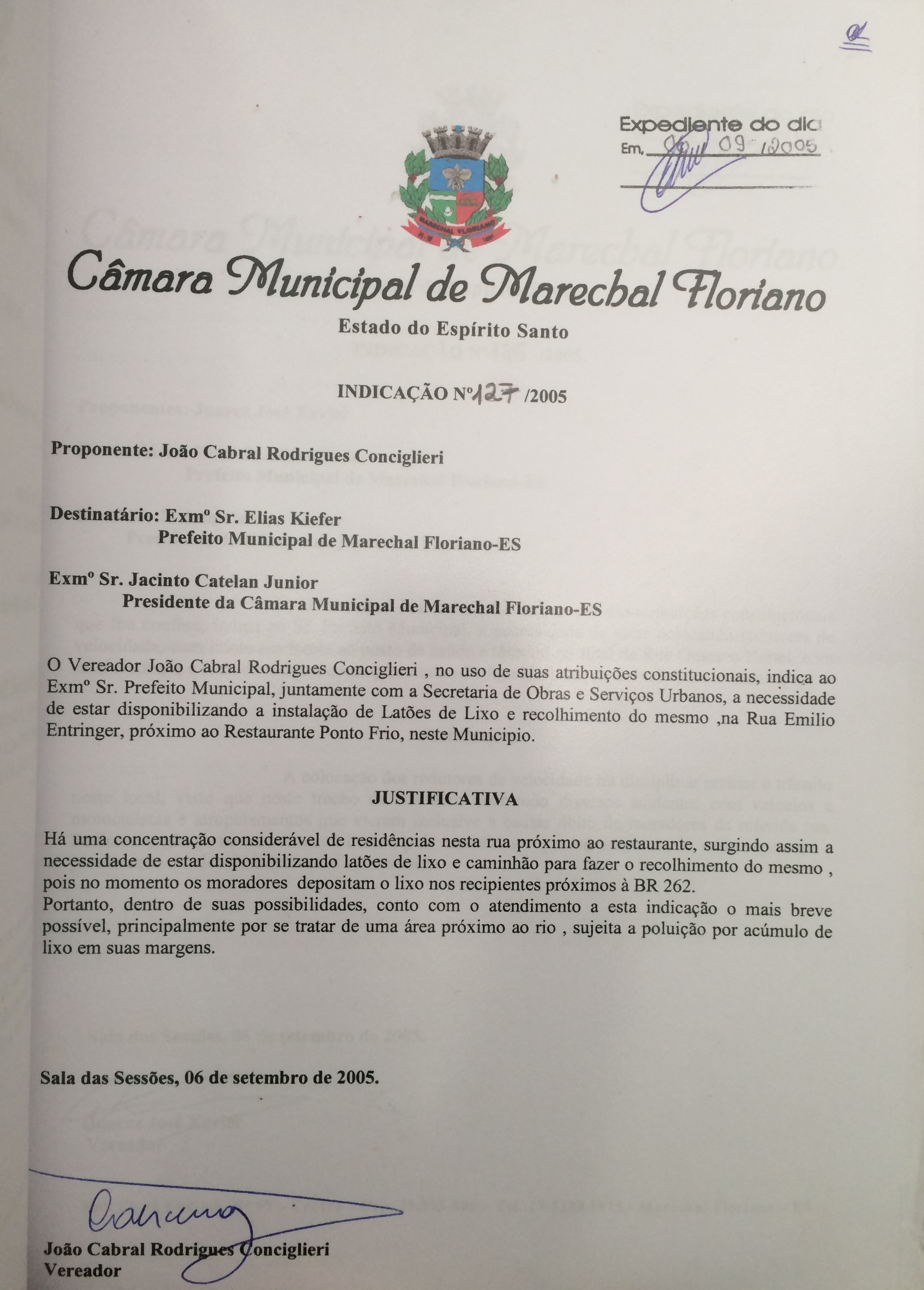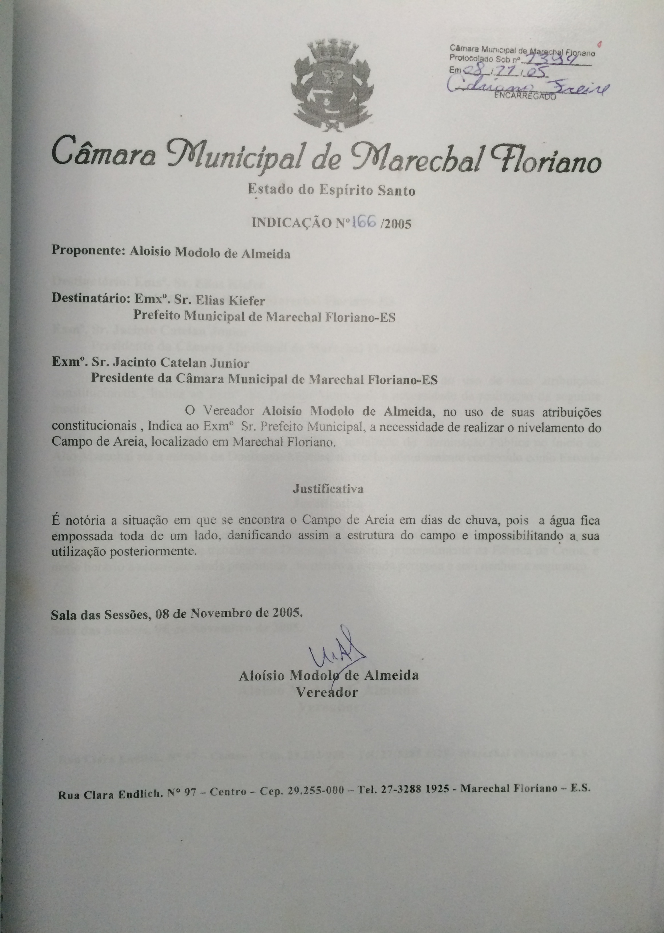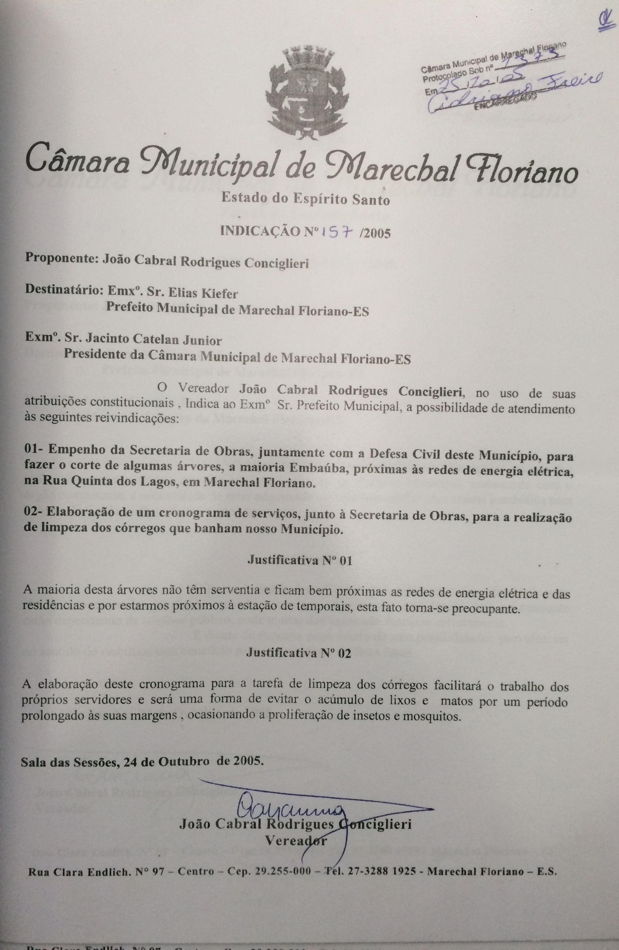Ementa: INDICA A POSSIBILIDADE DE ESTAR REALIZADO A DOAÇÃO DE UM TERRENO PARA AS NOVAS INSTALAÇÕES DO PODER LEGISLATIVO E JUDICIÁRIO, DE MARECHAL FLORIANO-ES.