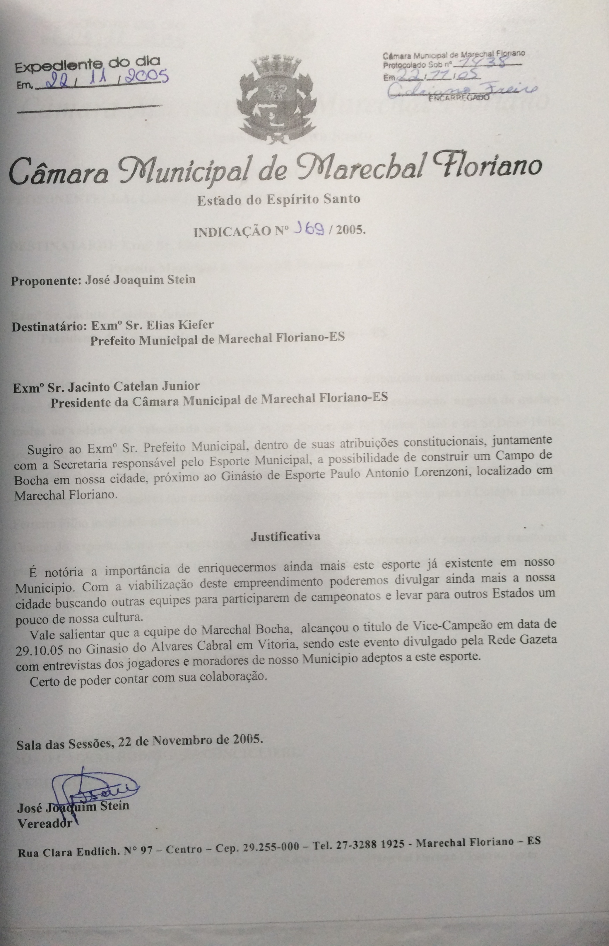 Ementa: INDICA A POSSIBILIDADE DE CONSTRUIR UM CAMPO DE BOCHA EM NOSSA CIDADE, PRÓXIMO AO GINÁSIO DE ESPORTES PAULO ANTONIO LORENZONI, LOCALIZADO EM MARECHAL FLORIANO.