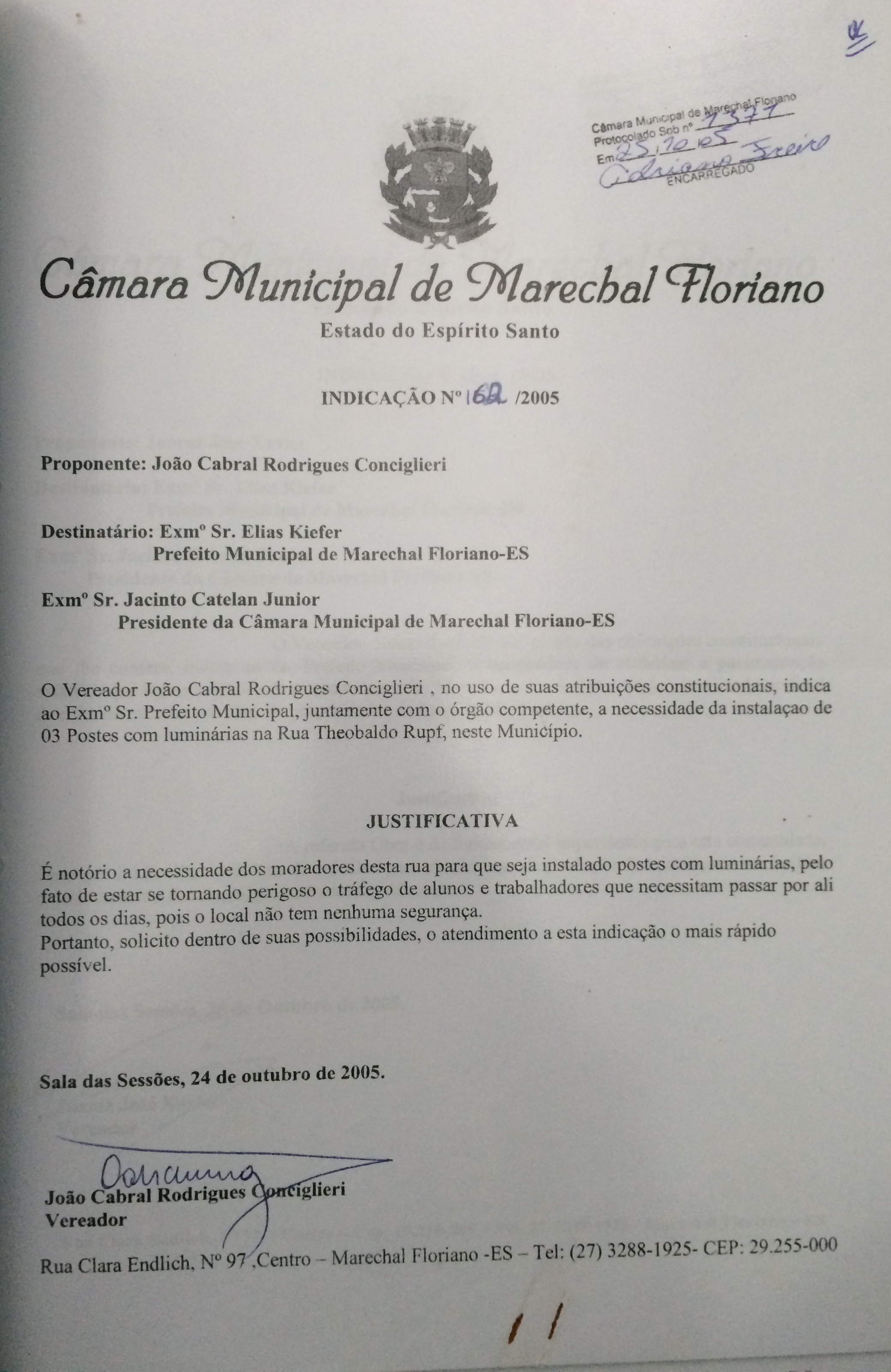 Ementa: INDICA A NECESSIDADE DA INSTALAÇÃO DE 03 POSTES COM LUMINÁRIAS NA RUA THEOBALDO RUPF, NESTE MUNICÍPIO.