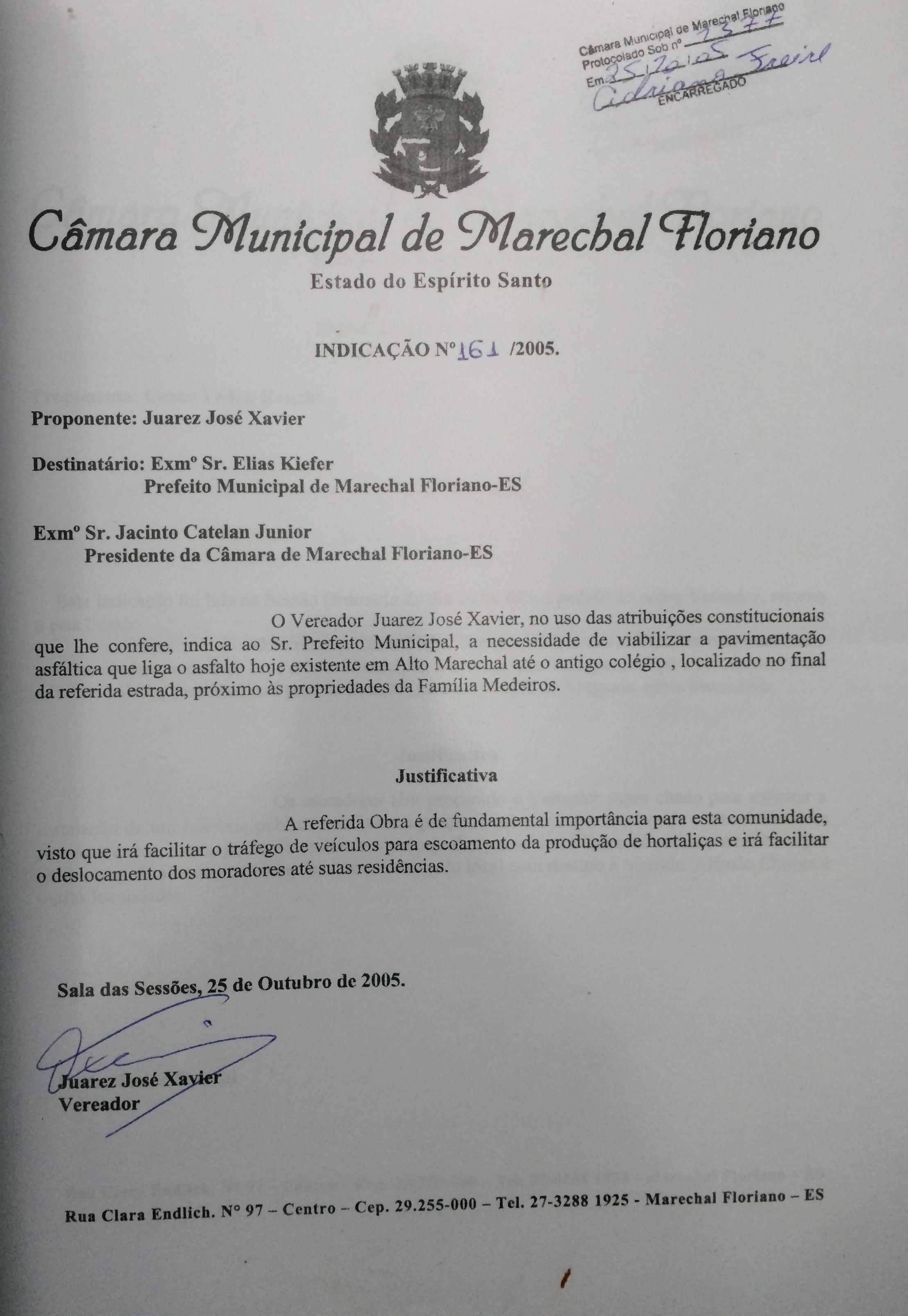 Ementa: INDICA A NECESSIDADE DE VIABILIZAR A PAVIMENTAÇÃO ASFÁLTICA QUE LIGA O ASFALTO HOJE EXISTENTE EM ALTO MARECHAL ATÉ O ANTIGO COLÉGIO, LOCALIZADO NO FINAL DA REFERIDA ESTRADA, PRÓXIMO A PROPRIEDADES DA FAMÍLIA MEDEIROS.