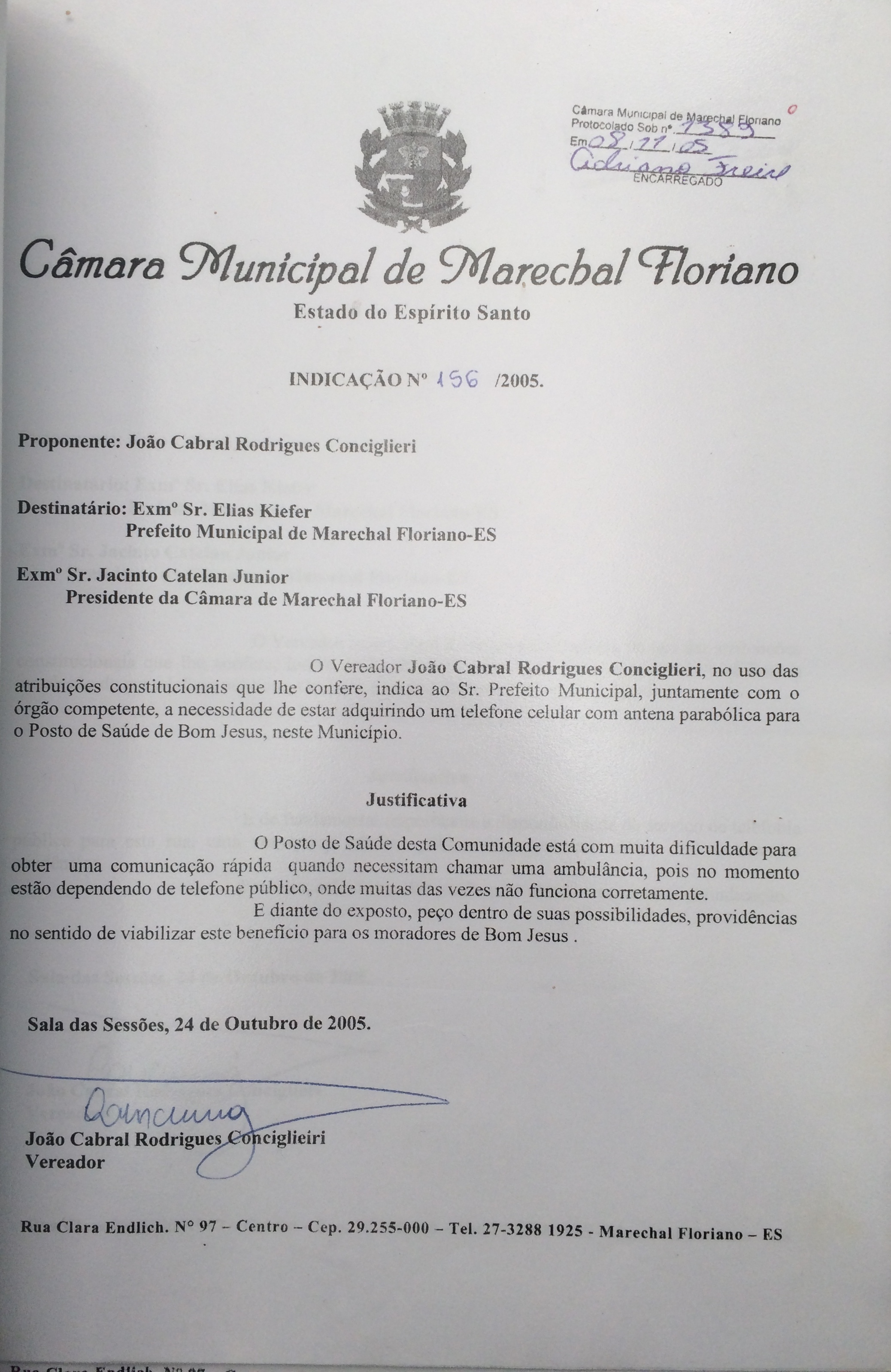 Ementa: INDICA A NECESSIDADE DE ESTAR ADQUIRINDO UM TELEFONE CELULAR COM ANTENA PARABÓLICA PARA O POSTO DE SAÚDE DE BOM JESUS, NESTE MUNICÍPIO.
