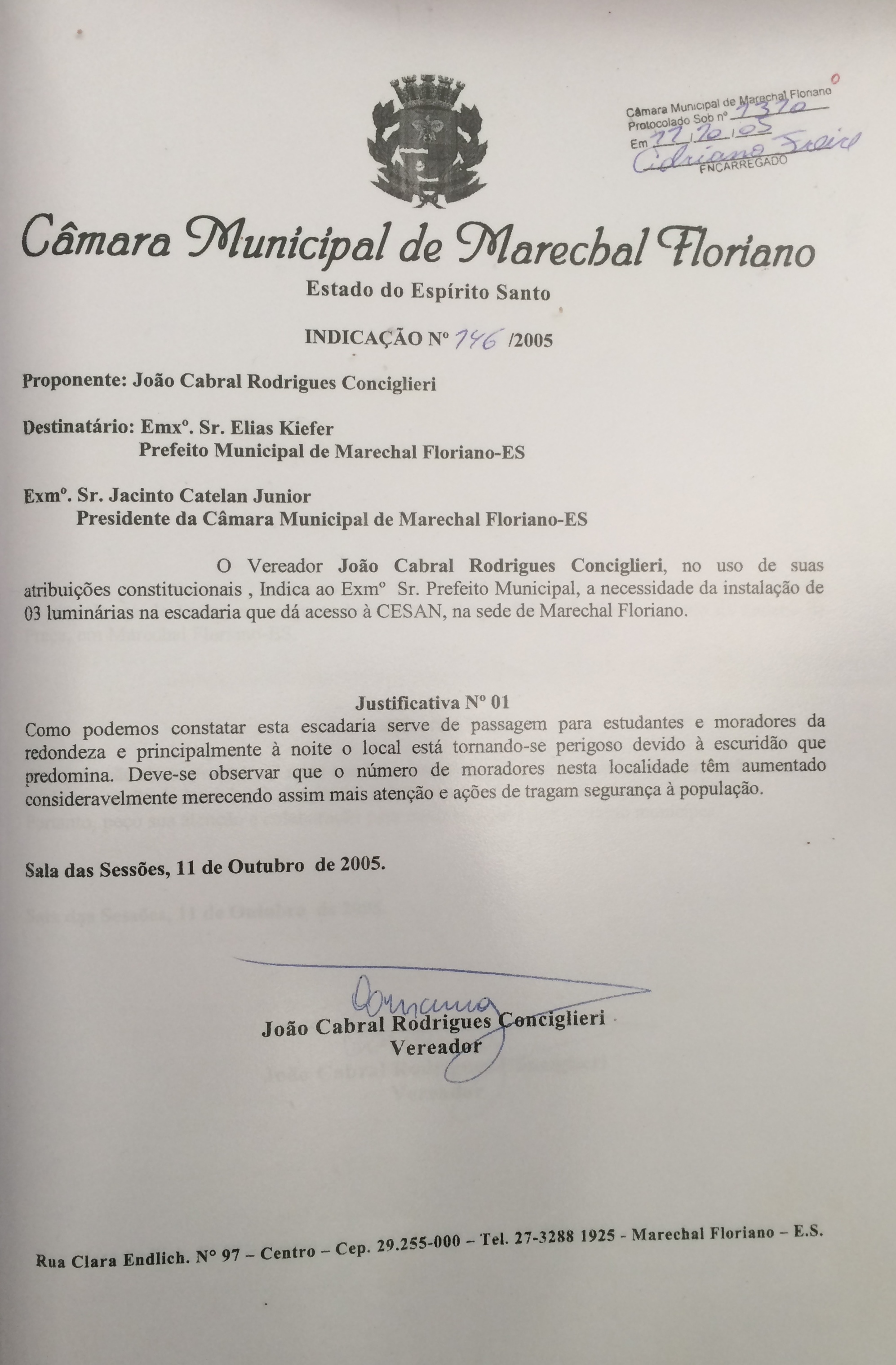 Ementa: INDICA A NECESSIDADE DA INSTALAÇÃO DE 03 LUMINÁRIAS NA ESCADARIA QUE DÁ ACESSO À CESAN, NA SEDE DE MARECHAL FLORIANO.