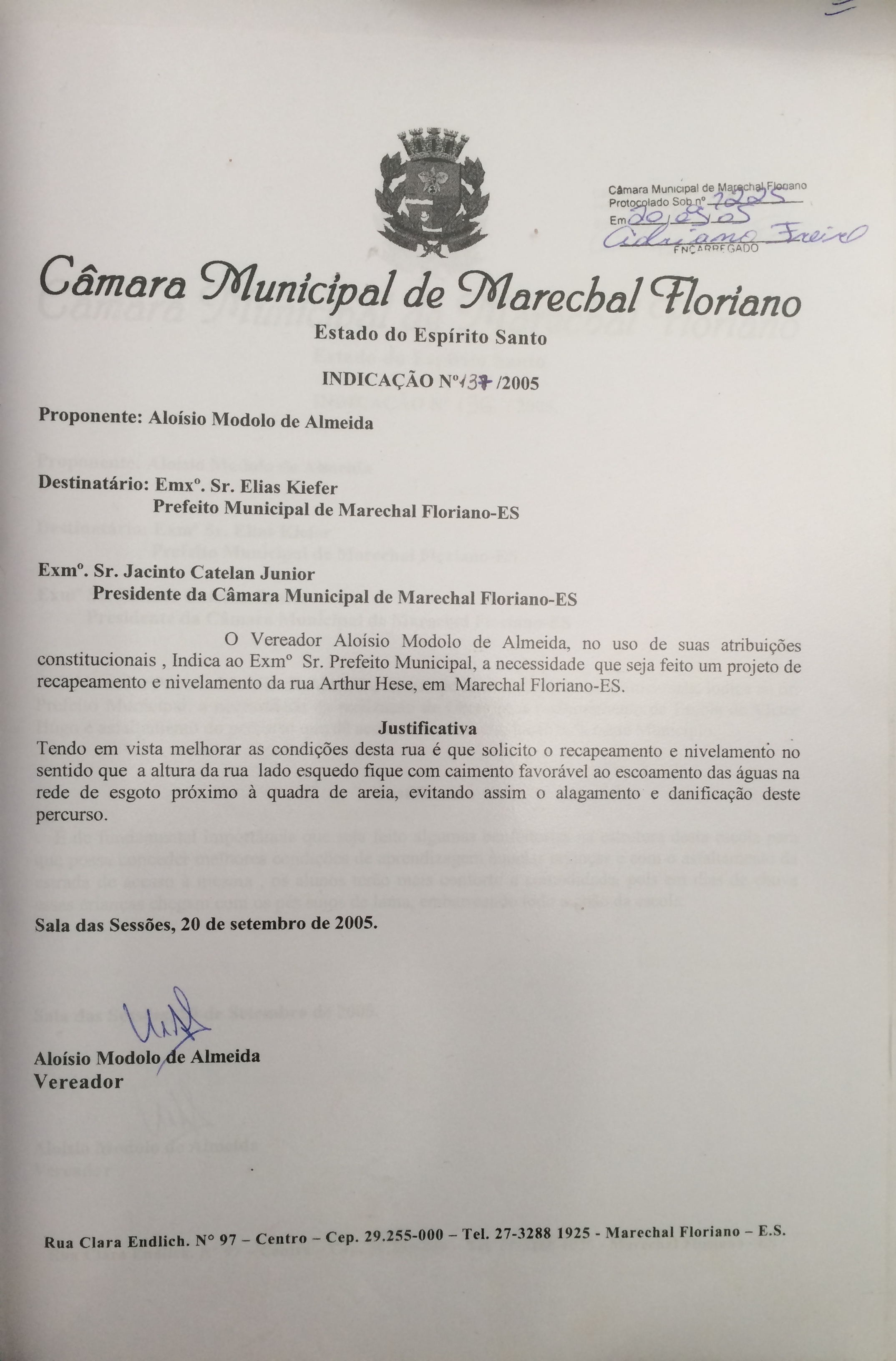 Ementa: INDICA A NECESSIDADE QUE SEJA FEITO UM PROJETO DE RECAPEAMENTO E NIVELAMENTO DA RUA ARTHUR HAESE, EM MARECHAL FLORIANO-ES.