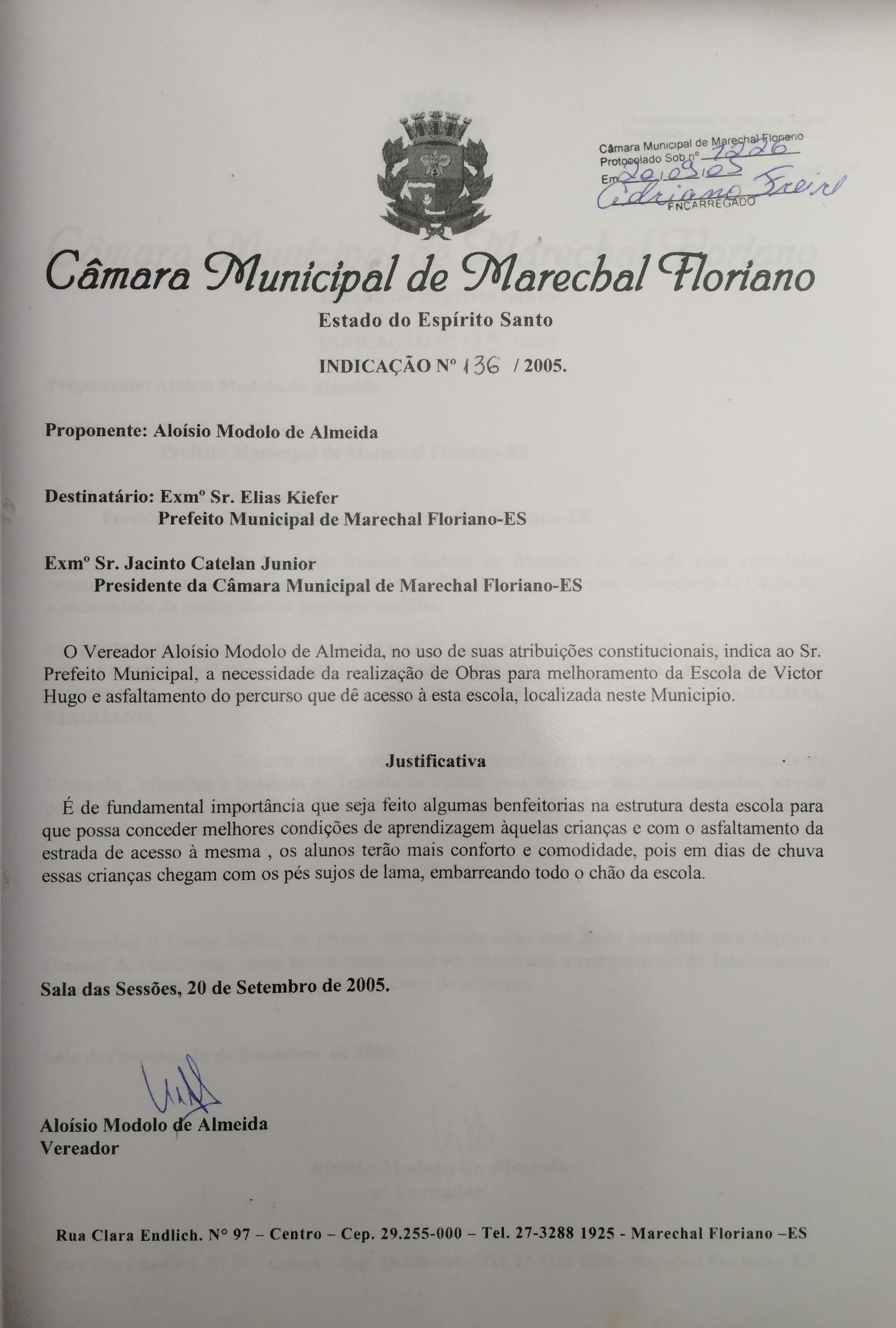 Ementa: INDICA A NECESSIDADE DA REALIZAÇÃO DE OBRAS PARA MELHORAMENTO DA ESCOLA DE VICTOR HUGO E ASFALTAMENTO DO PERCURSO QUE DÊ ACESSO À ESTA ESCOLA, LOCALIZADA NESTE MUNICÍPIO.