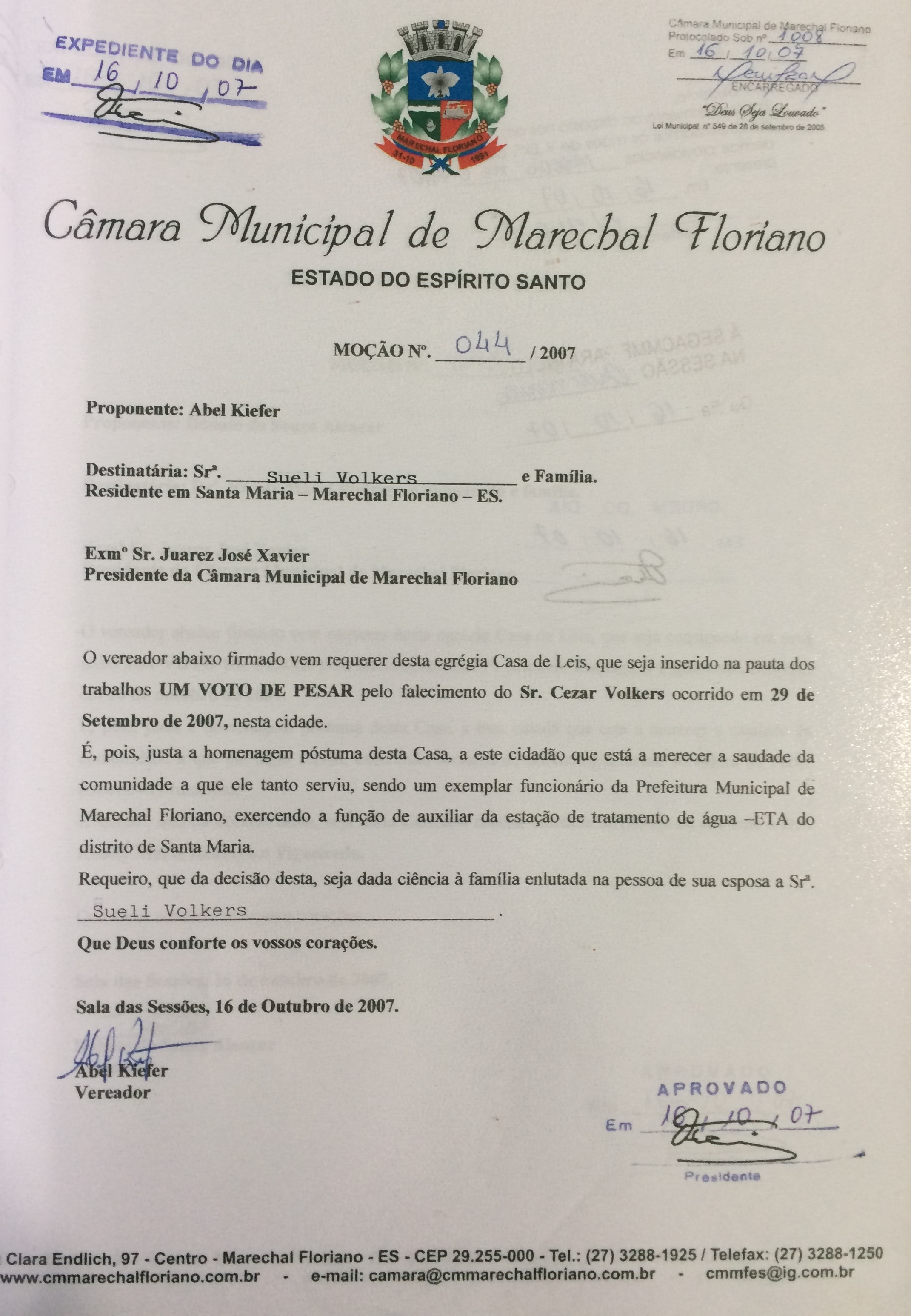 Ementa: MOÇÃO DE PESAR PELO FALECIMENTO DO SR. CESAR VOLKERS OCORRIDO EM 29 DE SETEMBRO DE 2007.