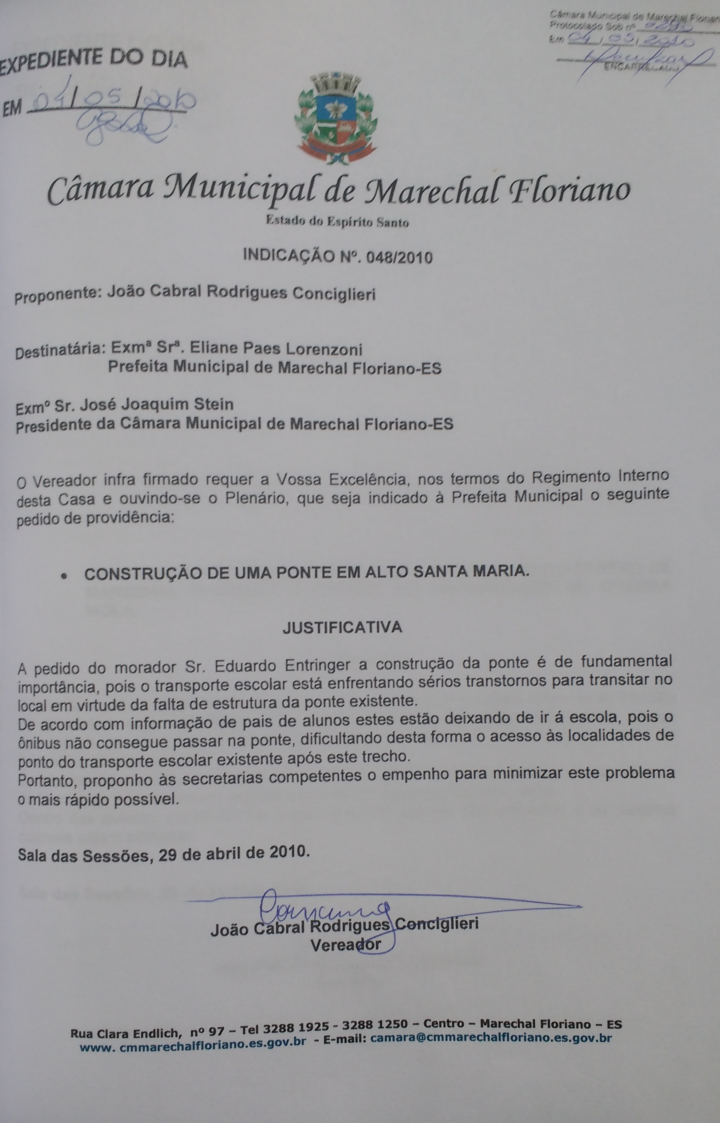 Ementa: CONSTRUÇÃO DE UMA PONTE EM ALTO SANTA MARIA.