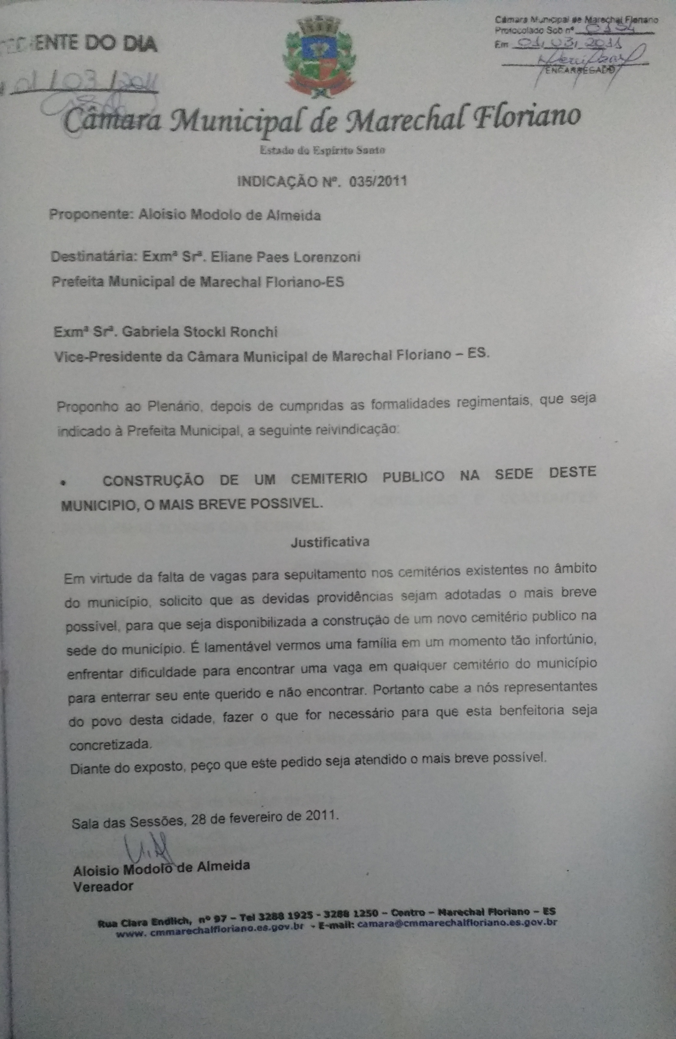 Ementa: CONSTRUÇÃO DE UM CEMITÉRIO PÚBLICO NA SEDE DESTE MUNICÍPIO, O MAIS BREVE POSSÍVEL.