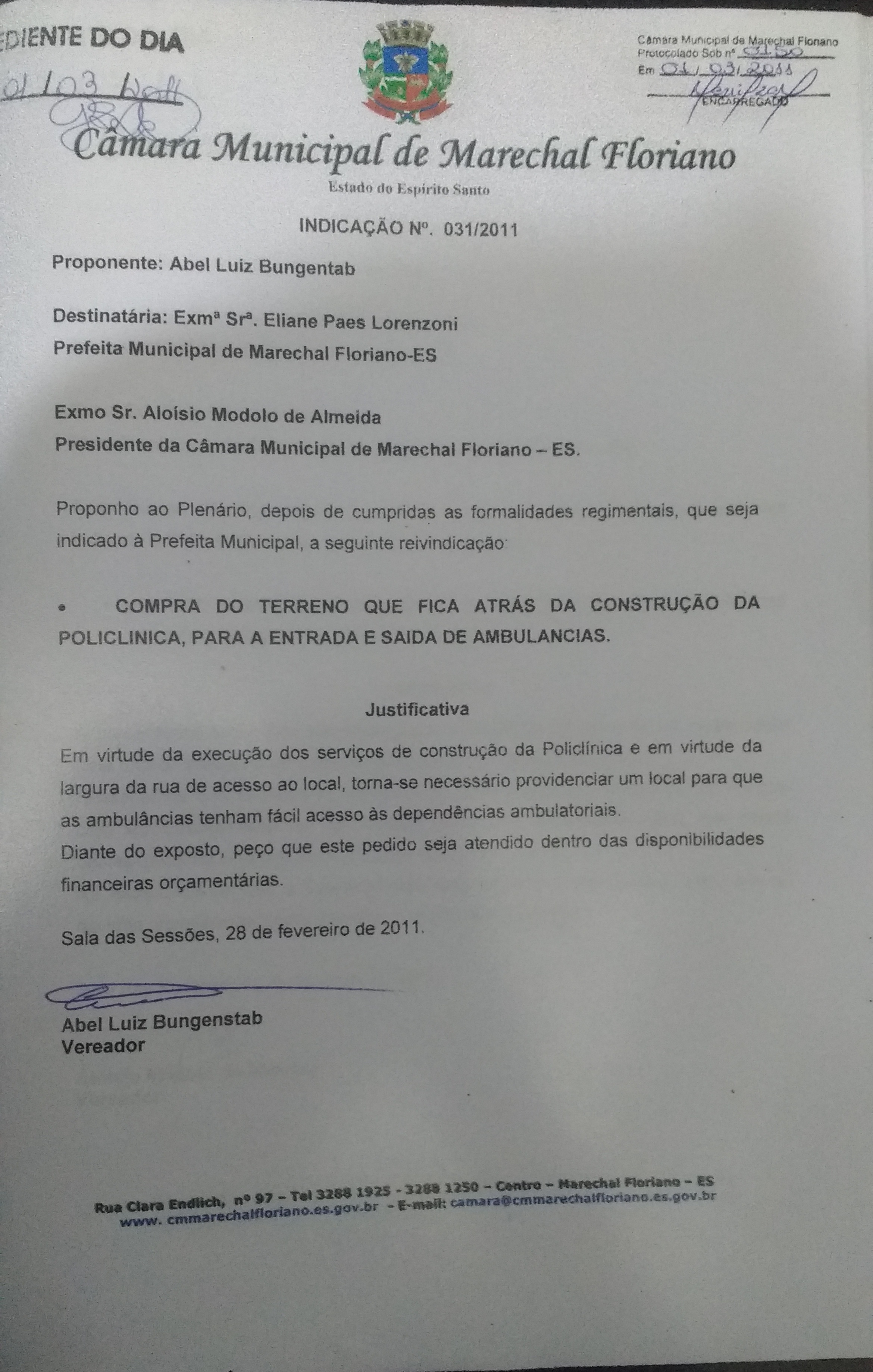 Ementa: COMPRA DO TERRENO QUE FICA ATRÁS DA CONSTRUÇÃO DA POLICLÍNICA, PARA A ENTRADA E SAÍDA DE AMBULÂNCIAS.
