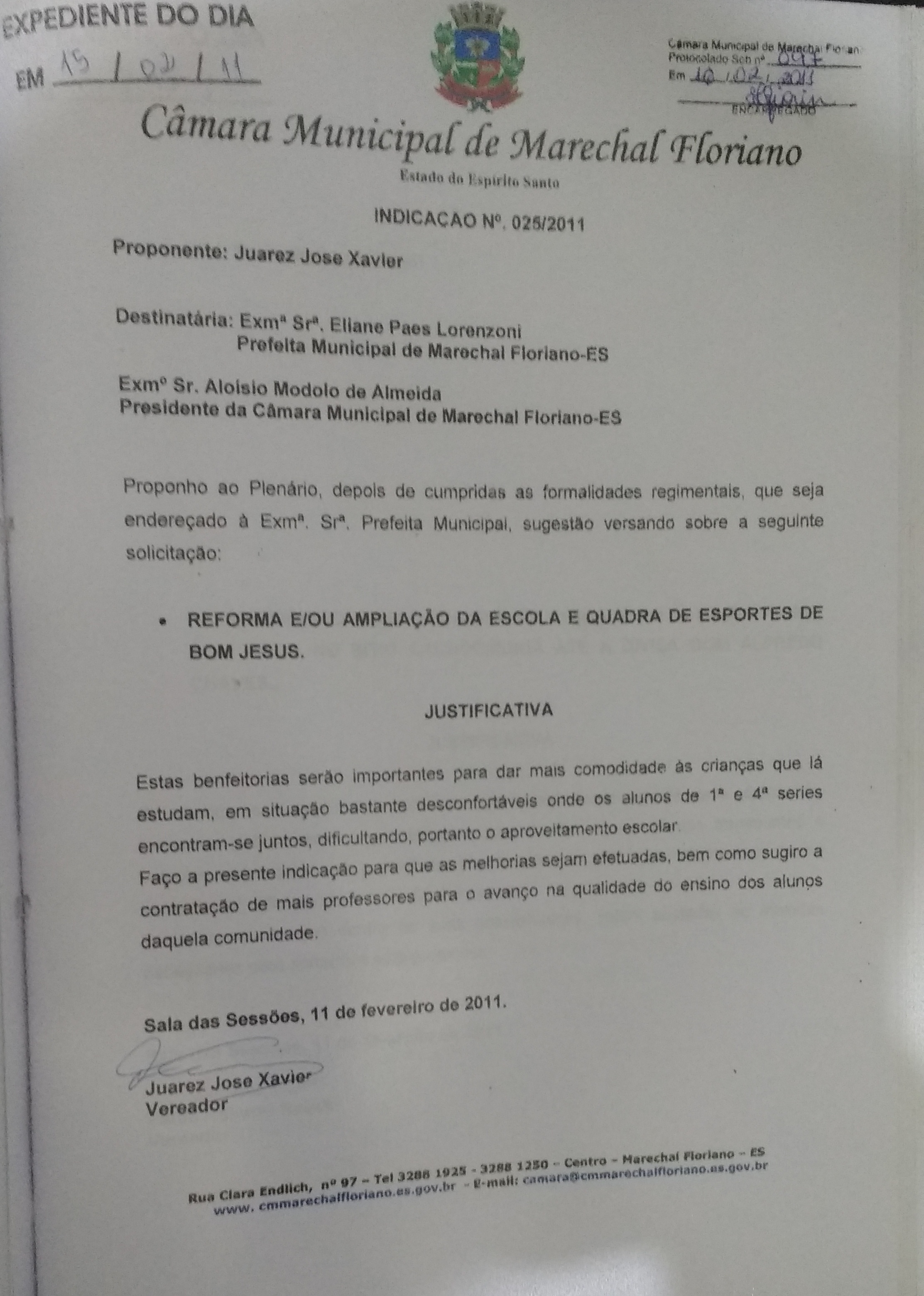 Ementa: REFORMA E/OU AMPLIAÇÃO DA ESCOLA E QUADRA DE ESPORTES DE BOM JESUS.