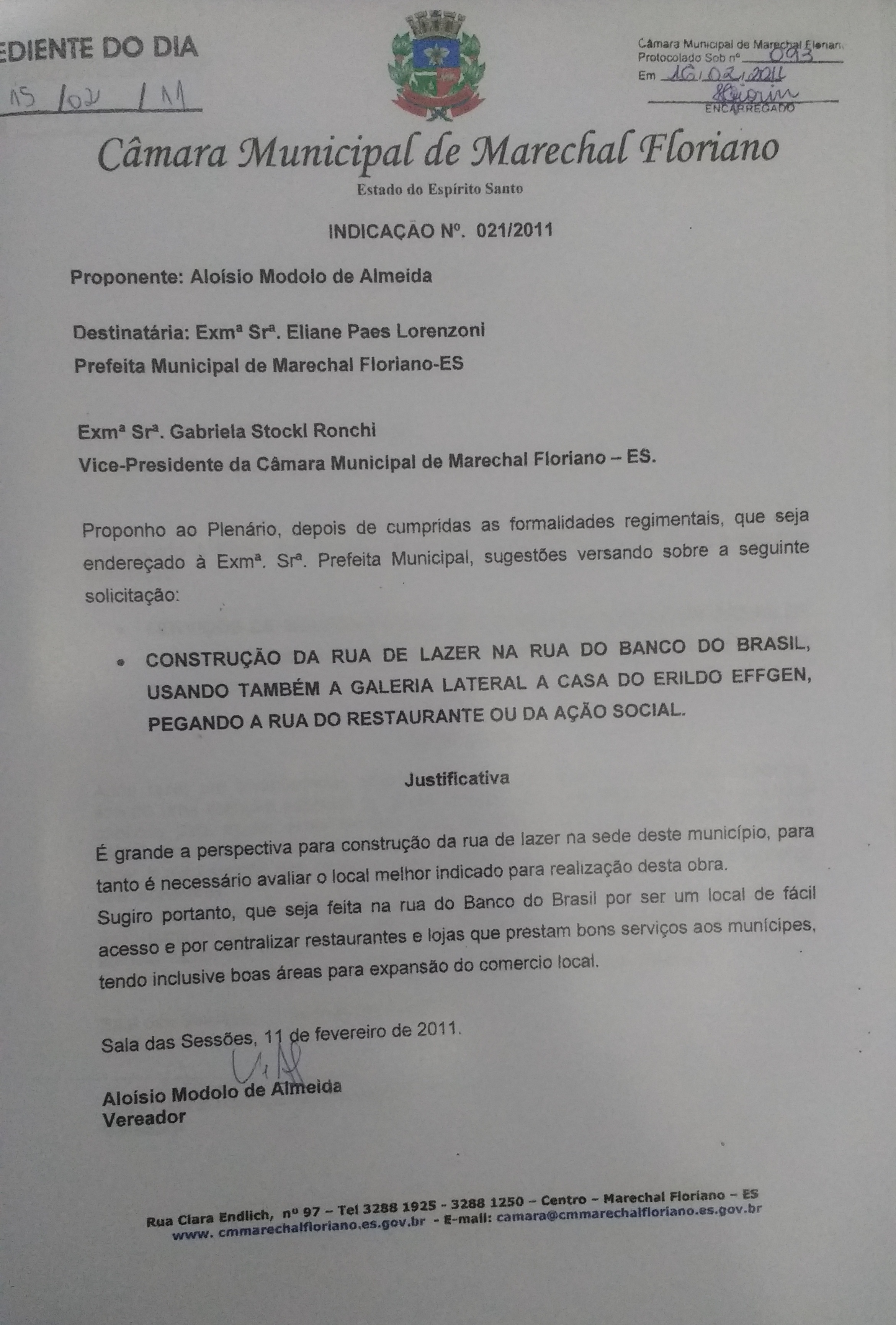 Ementa: CONSTRUÇÃO DA RUA DE LAZER NA RUA DO BANCO DO BRASIL, USANDO TAMBÉM A GALERIA LATERAL A CASA DO ERILDO EFFGEN, PEGANDO A RUA DO RESTAURANTE OU DA AÇÃO SOCIAL.