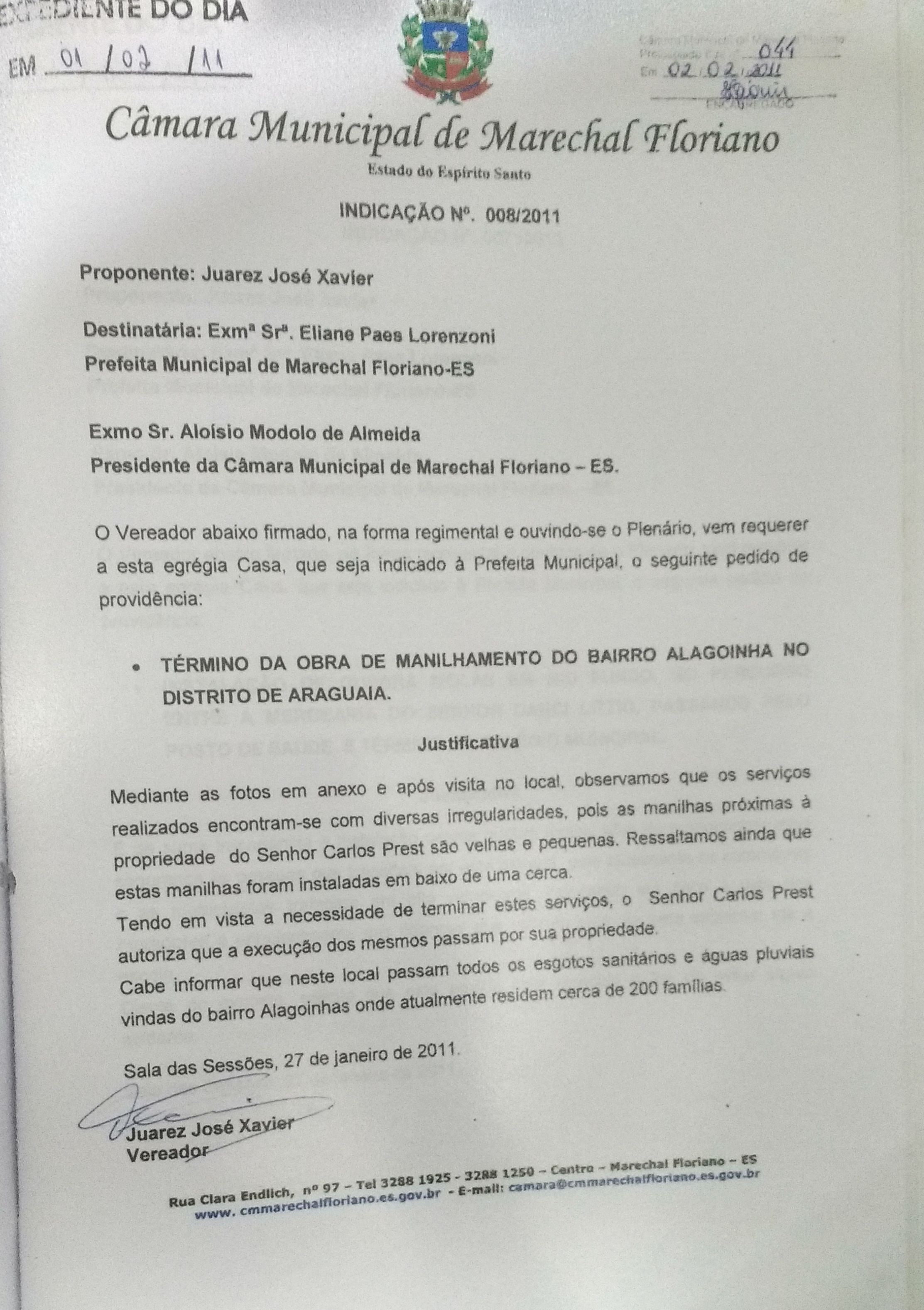Ementa: TÉRMINO DA OBRA DE MANILHAMENTO DO BAIRRO ALAGOINHA NO DISTRITO DE ARAGUAIA.