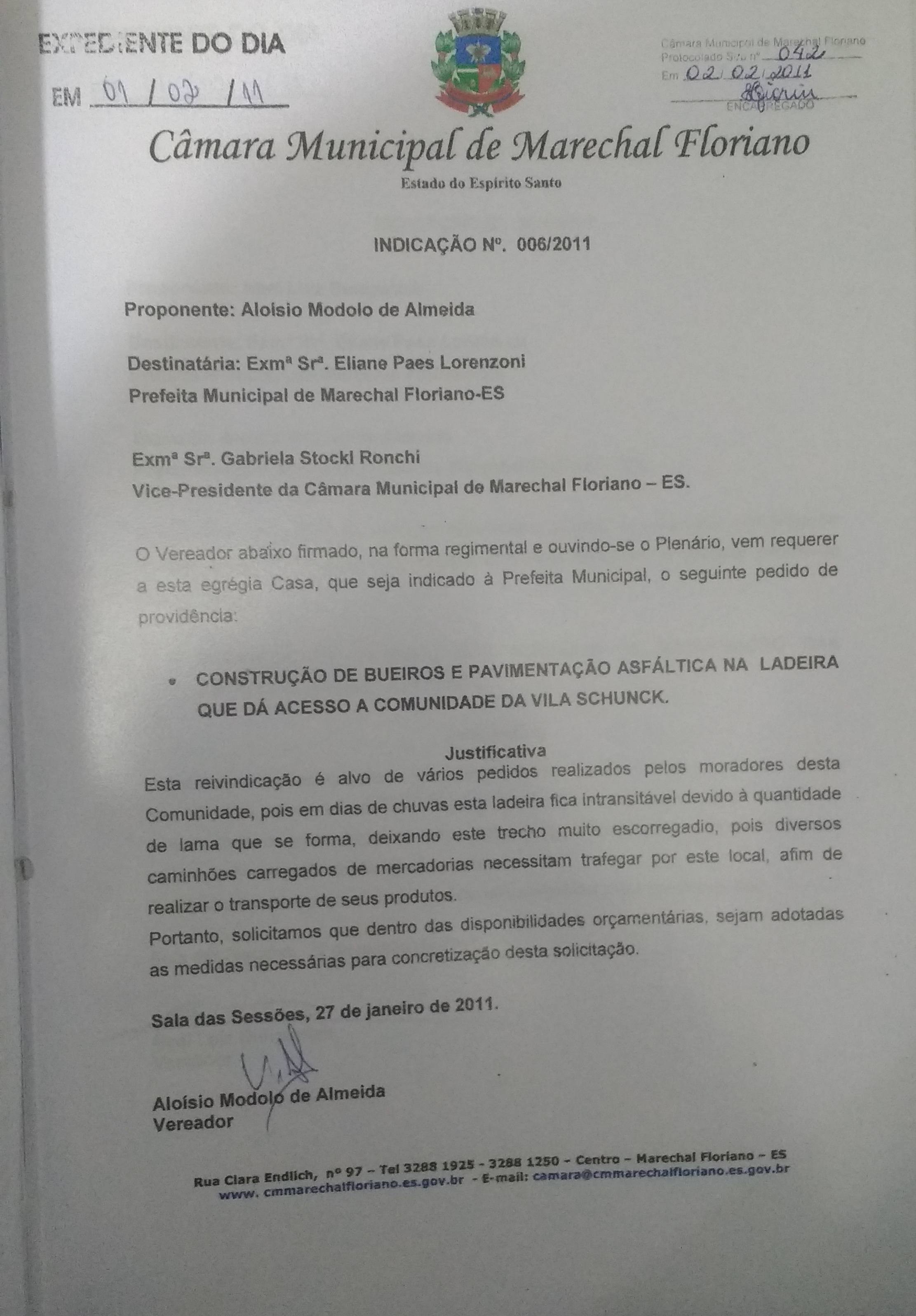 Ementa: CONSTRUÇÃO DE BUEIROS E PAVIMENTAÇÃO ASFÁLTICA NA LADEIRA QUE DÁ ACESSO A COMUNIDADE DA VILA SCHUNCK.