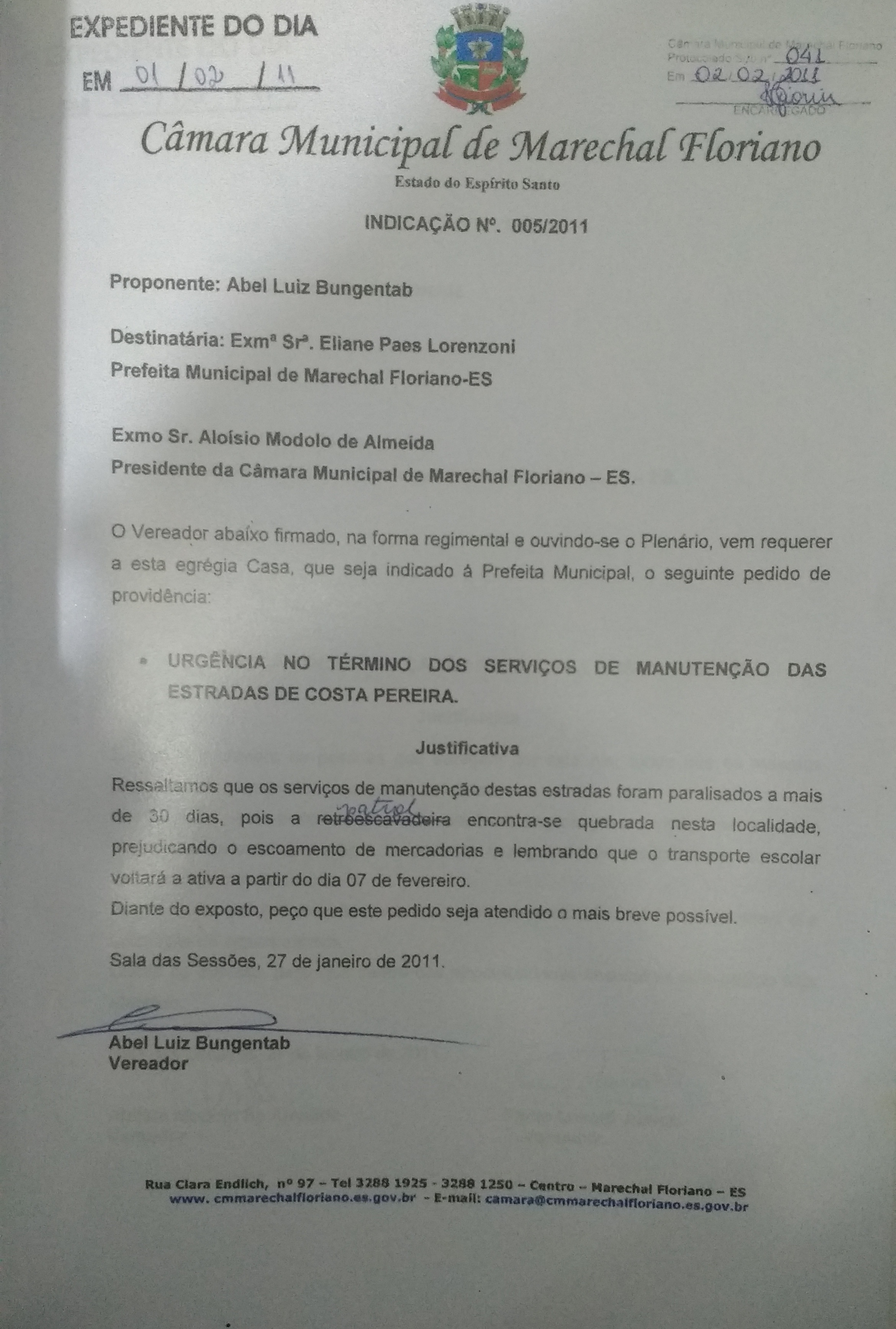 Ementa: URGÊNCIA NO TÉRMINO DOS SERVIÇOS DE MANUTENÇÃO DAS ESTRADAS DE COSTA PEREIRA.