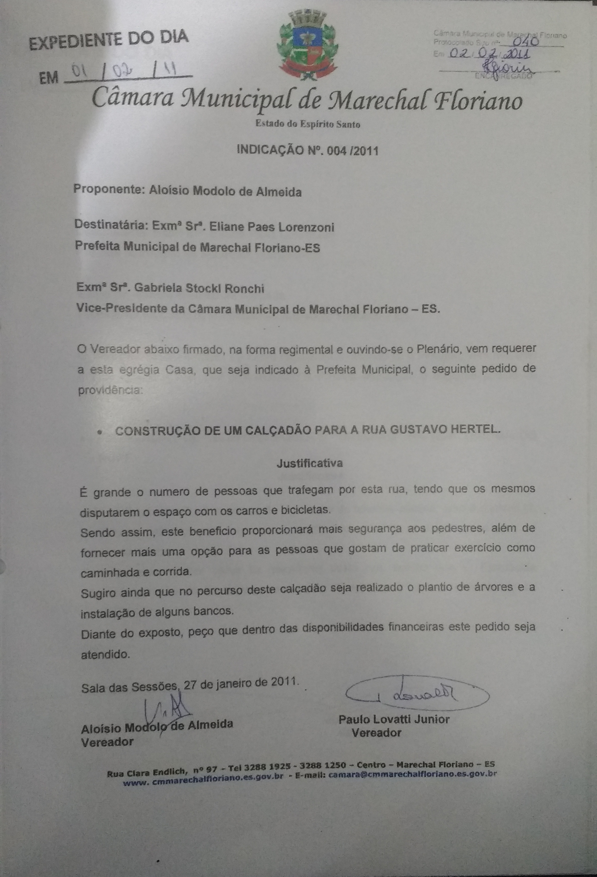 Ementa: CONSTRUÇÃO DE UM CALÇADÃO PARA A RUA GUSTAVO HERTEL.