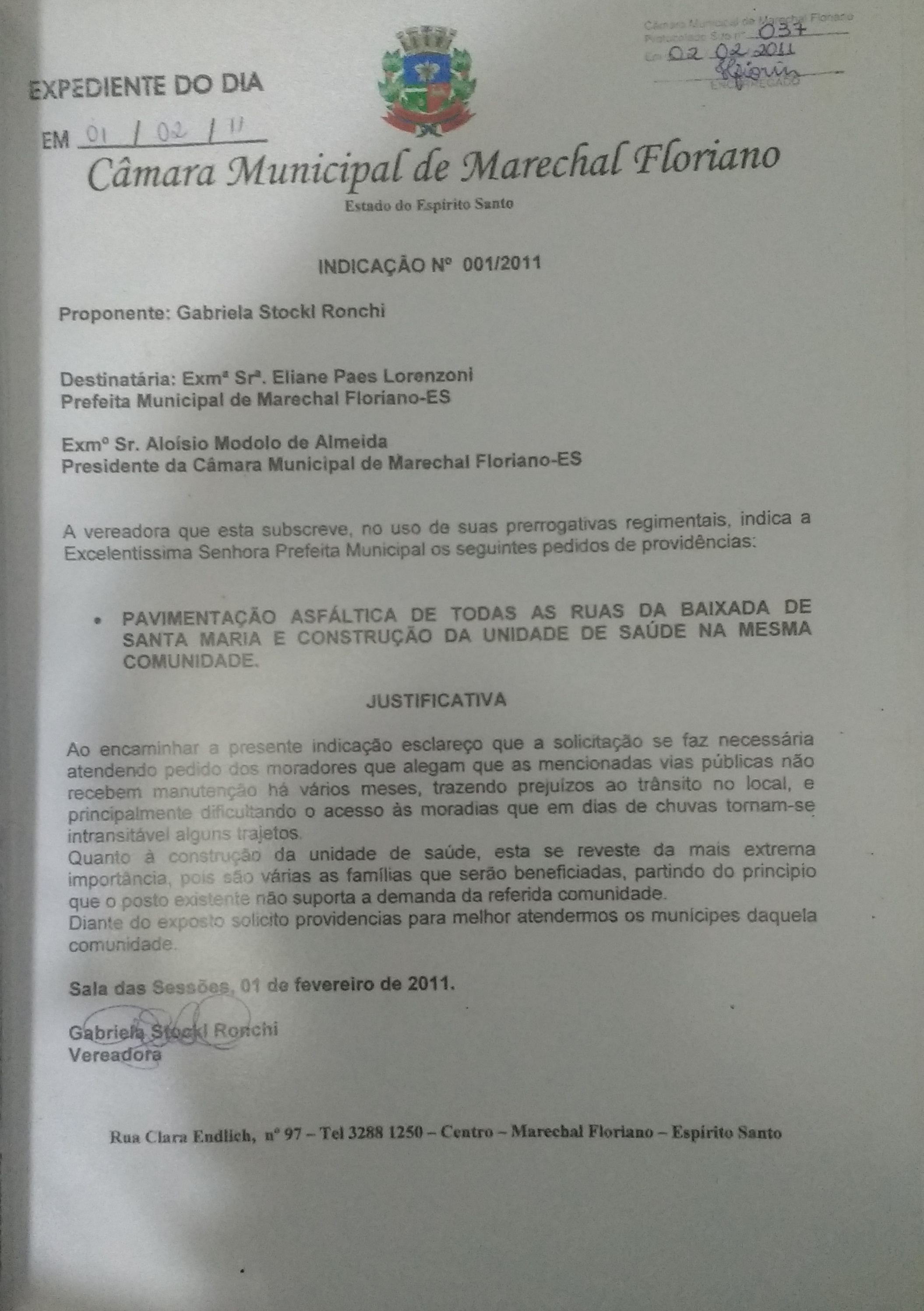 Ementa: PAVIMENTAÇÃO ASFÁLTICA DE TODAS AS RUAS DA BAIXADA DE SANTA MARIA E CONSTRUÇÃO DA UNIDADE DE SAÚDE NA MESMA COMUNIDADE.