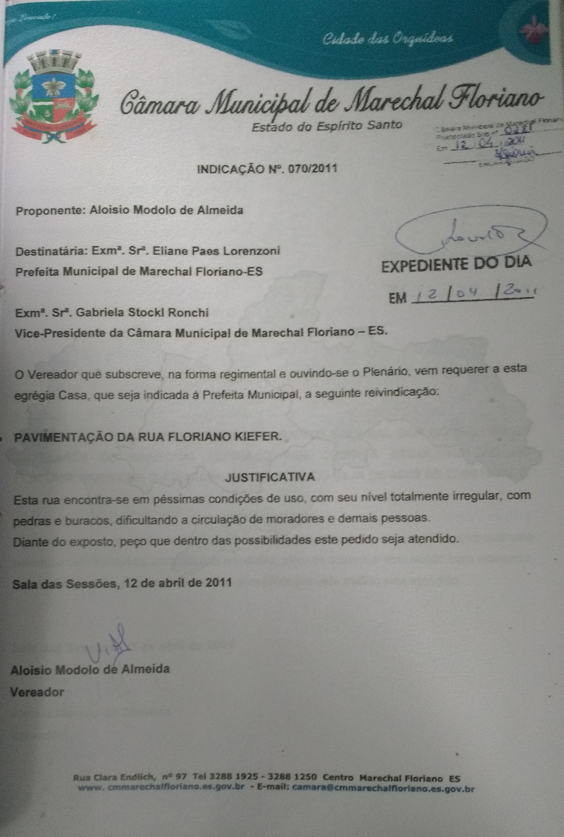 Ementa: PAVIMENTAÇÃO DA RUA FLORIANO KIEFER.