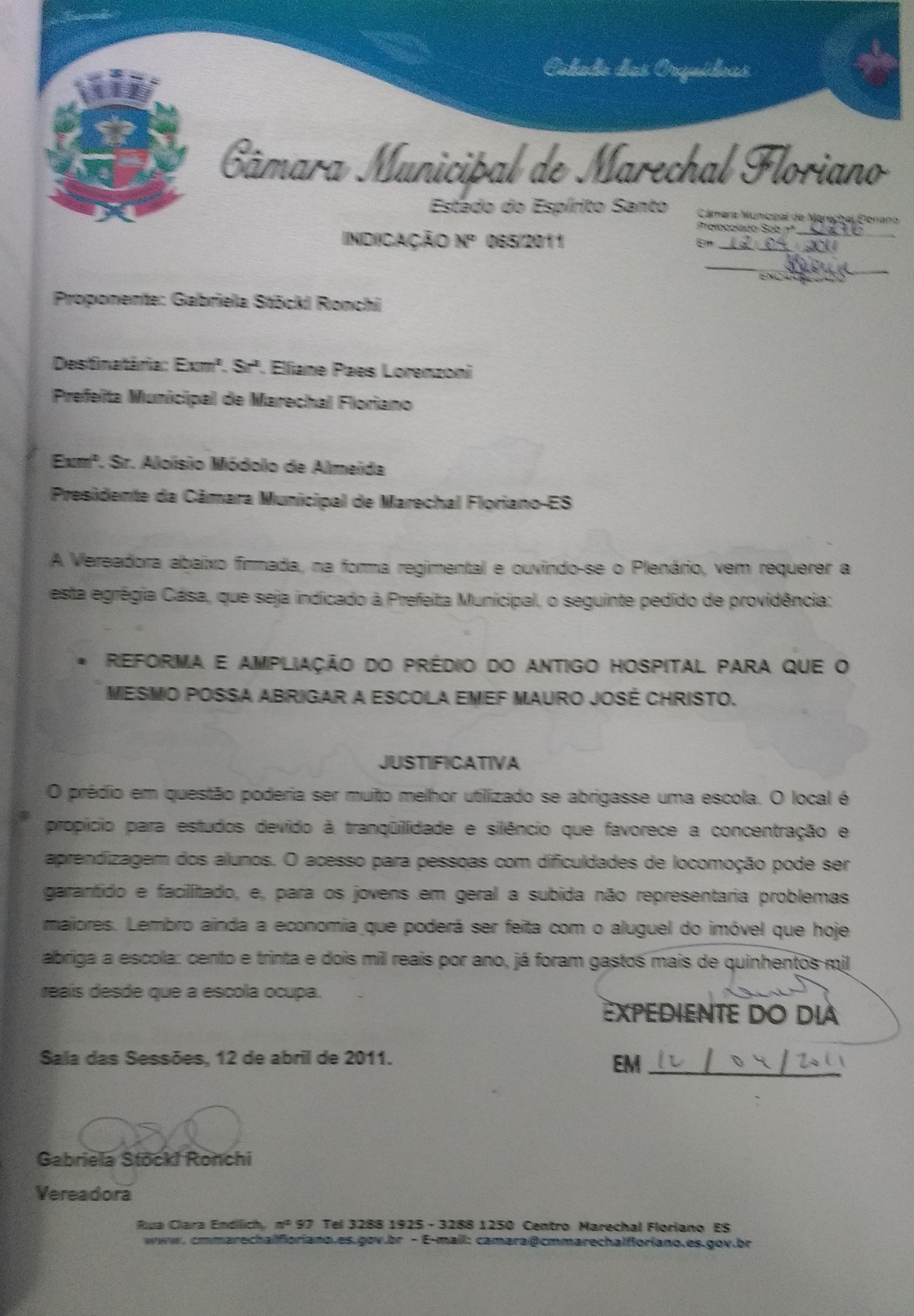 Ementa: REFORMA E AMPLIAÇÃO DO PRÉDIO DO ANTIGO HOSPITAL PARA QUE O MESMO POSSA ABRIGAR A ESCOLA EMEF MAURO JOSÉ CHRISTO.