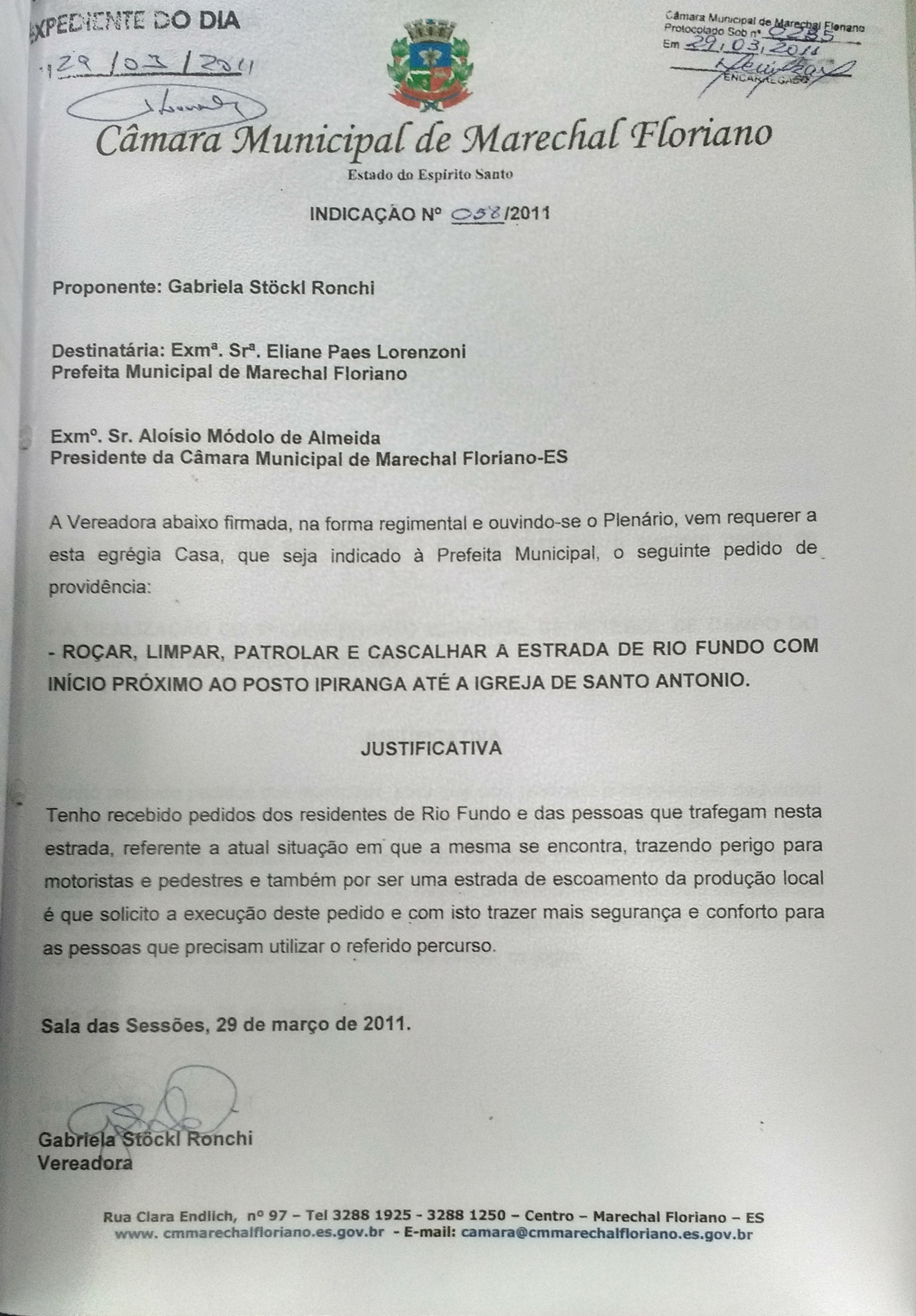 Ementa: ROÇAR, LIMPAR, PATROLAR E CASCALHAR A ESTRADA DE RIO FUNDO COM INICIO PRÓXIMO AO POSTO IPIRANGA ATÉ A IGREJA DE SANTO ANTONIO.