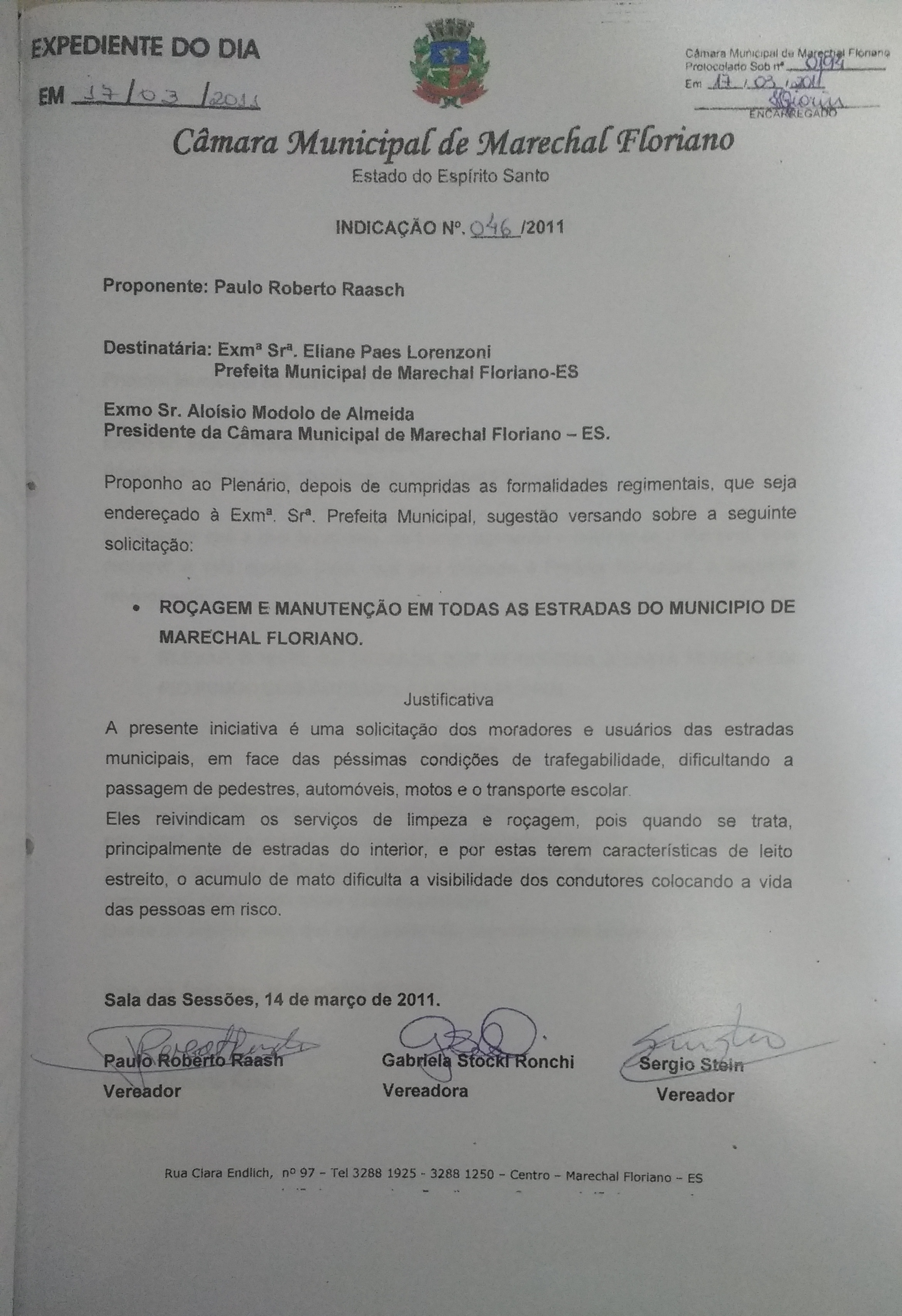 Ementa: COMPLEMENTO DO ASFALTO NA ESTRADA QUE LIGA A SEDE DESTE MUNICÍPIO A COSTA PEREIRA, INICIANDO-SE NA SUBIDA PRÓXIMO A ENTRADA DO VALE DA TRANQUILIDADE, PASSANDO PELA ANTIGA RESIDÊNCIA DO SENHOR DANILO CANAL, PELA RESIDENCIA DA FAMÍLIA ALMEIDA E RESIDENCIAS DOS SENHORES MAZINHO DE FREITAS PADILHA, PEDRO MARQUES E ROBERTO PADILHA.