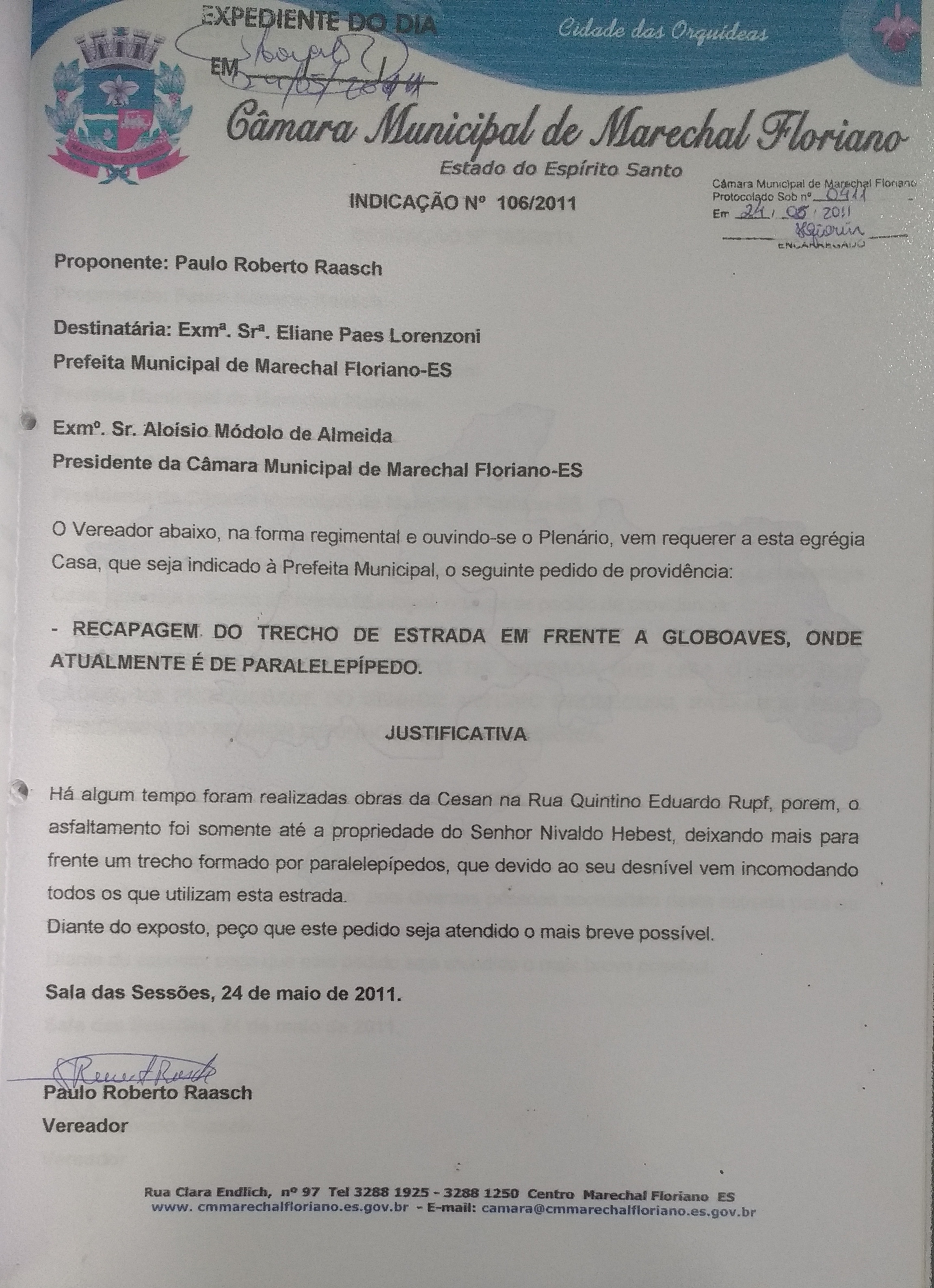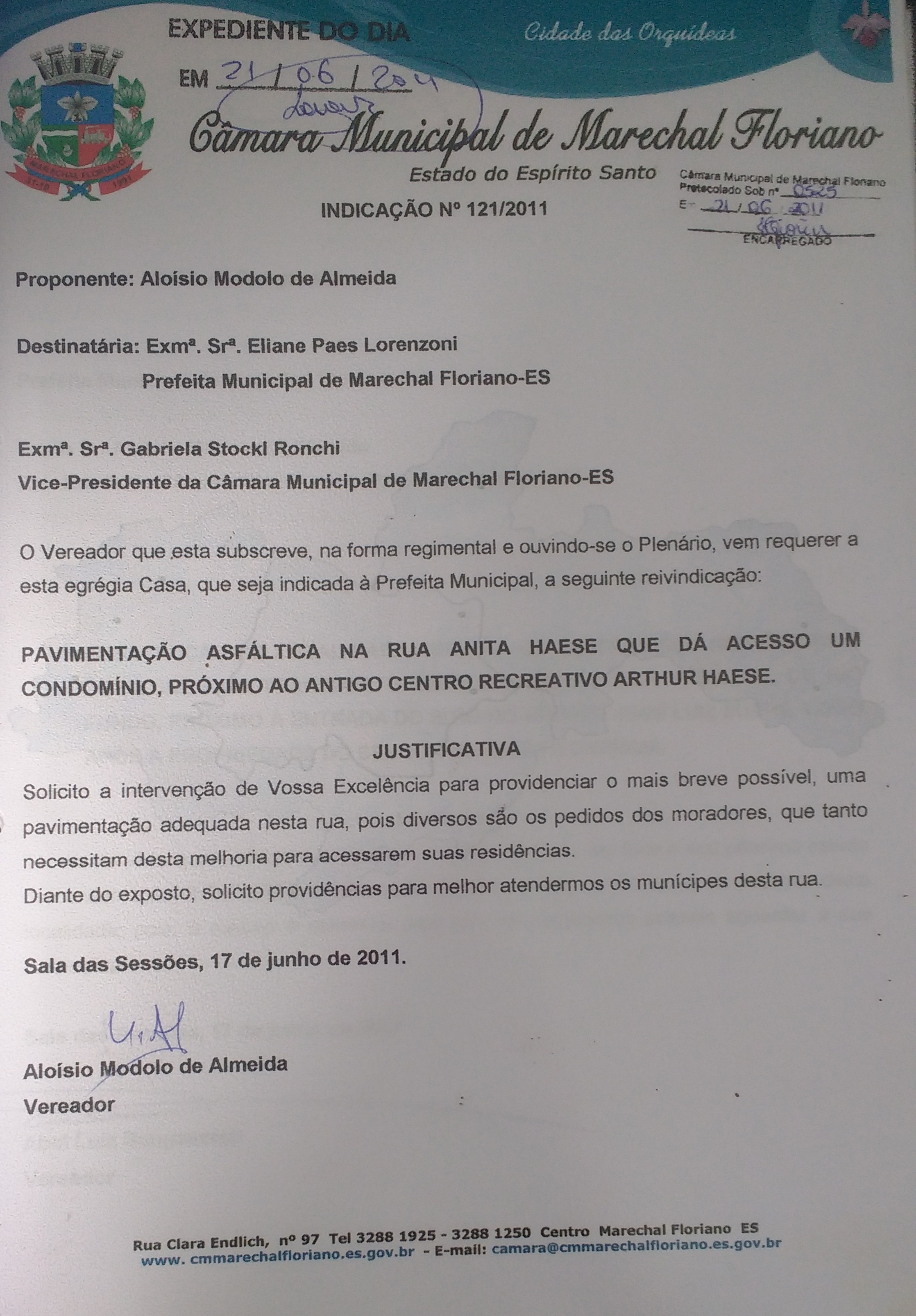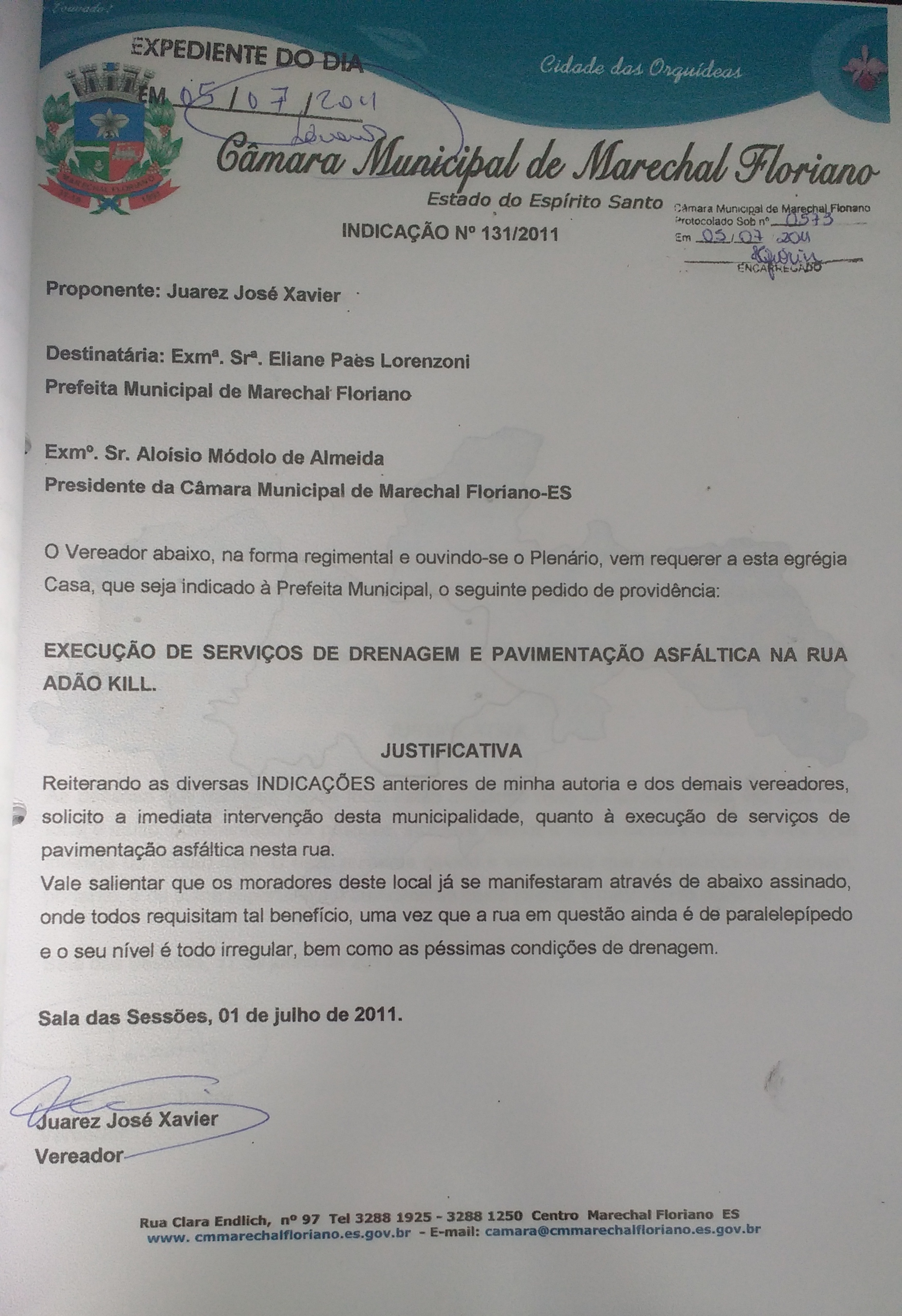 Ementa: PAVIMENTAÇÃO ASFÁLTICA DA RUA ADÃO KILL, EM MARECHAL FLORIANO.