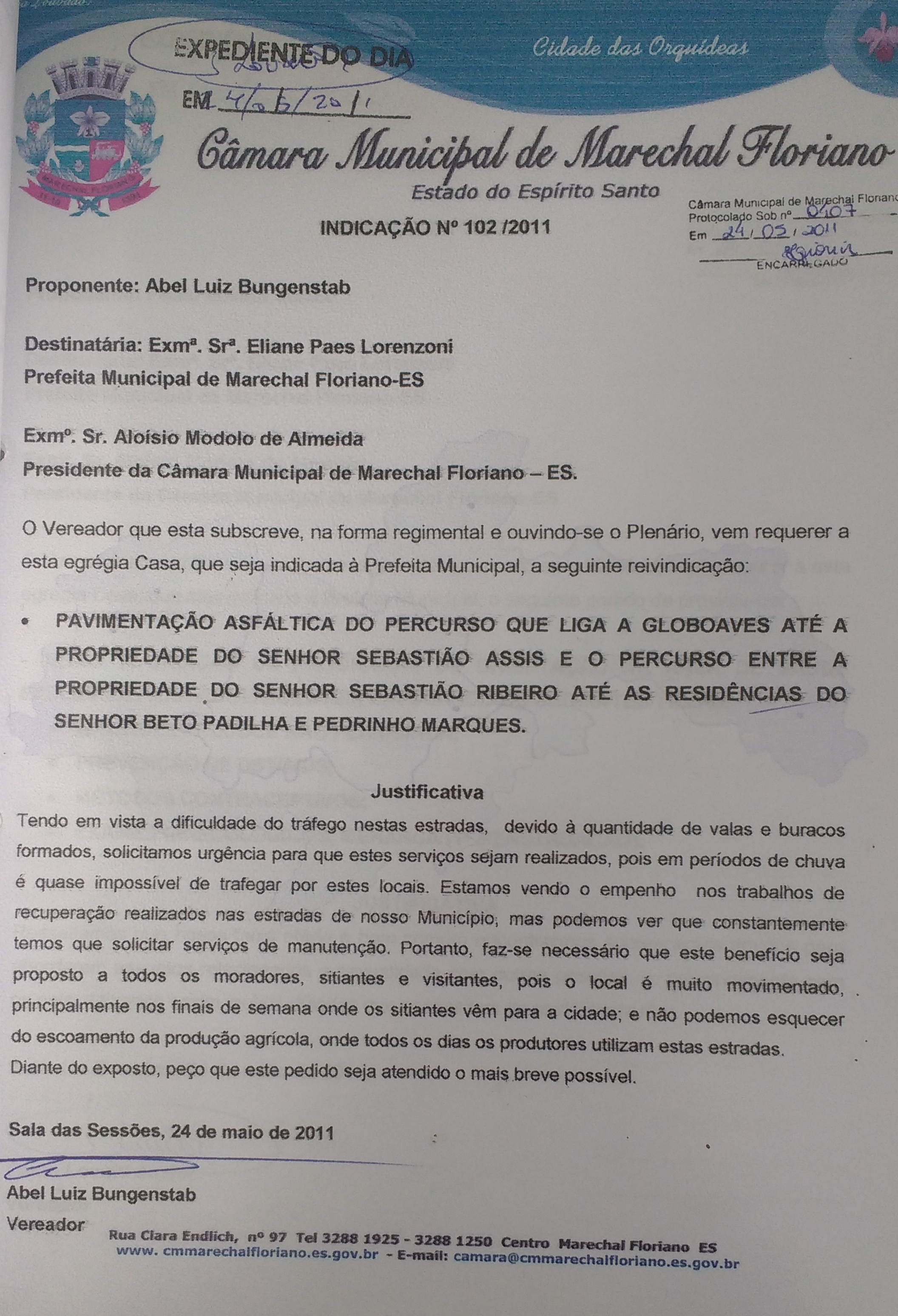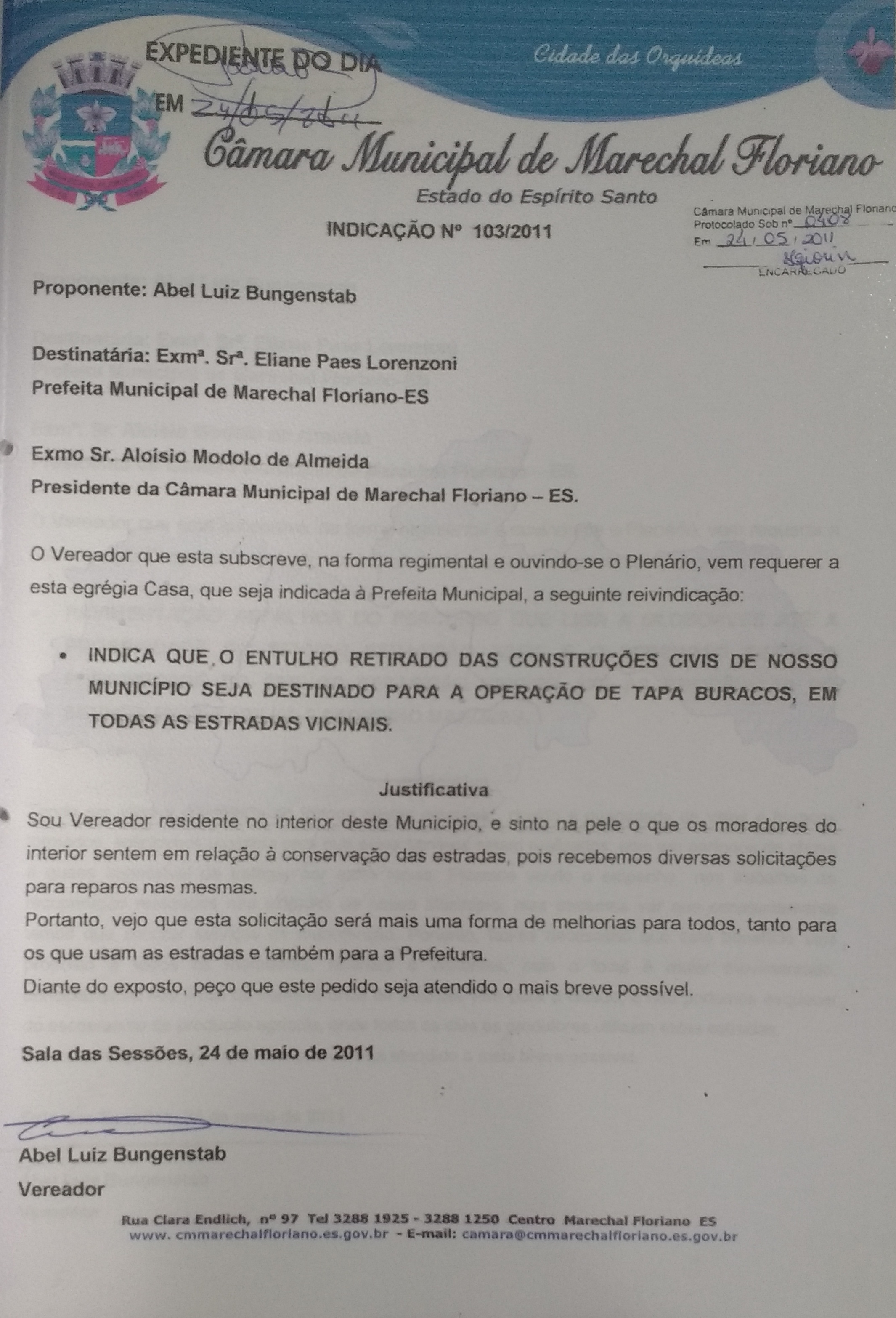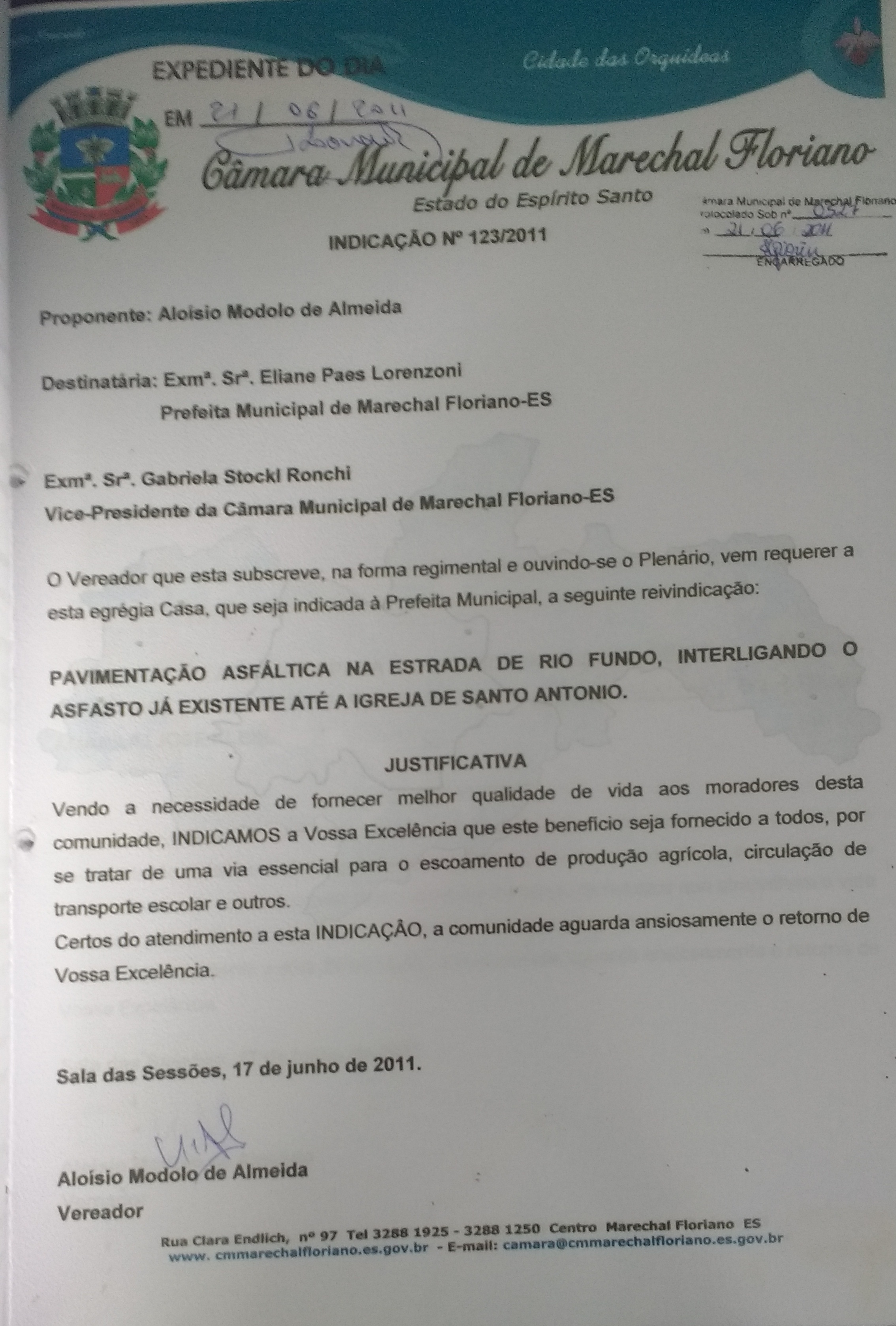 Ementa: PAVIMENTAÇÃO ASFÁLTICA DA RUA ADÃO KILL, EM MARECHAL FLORIANO.