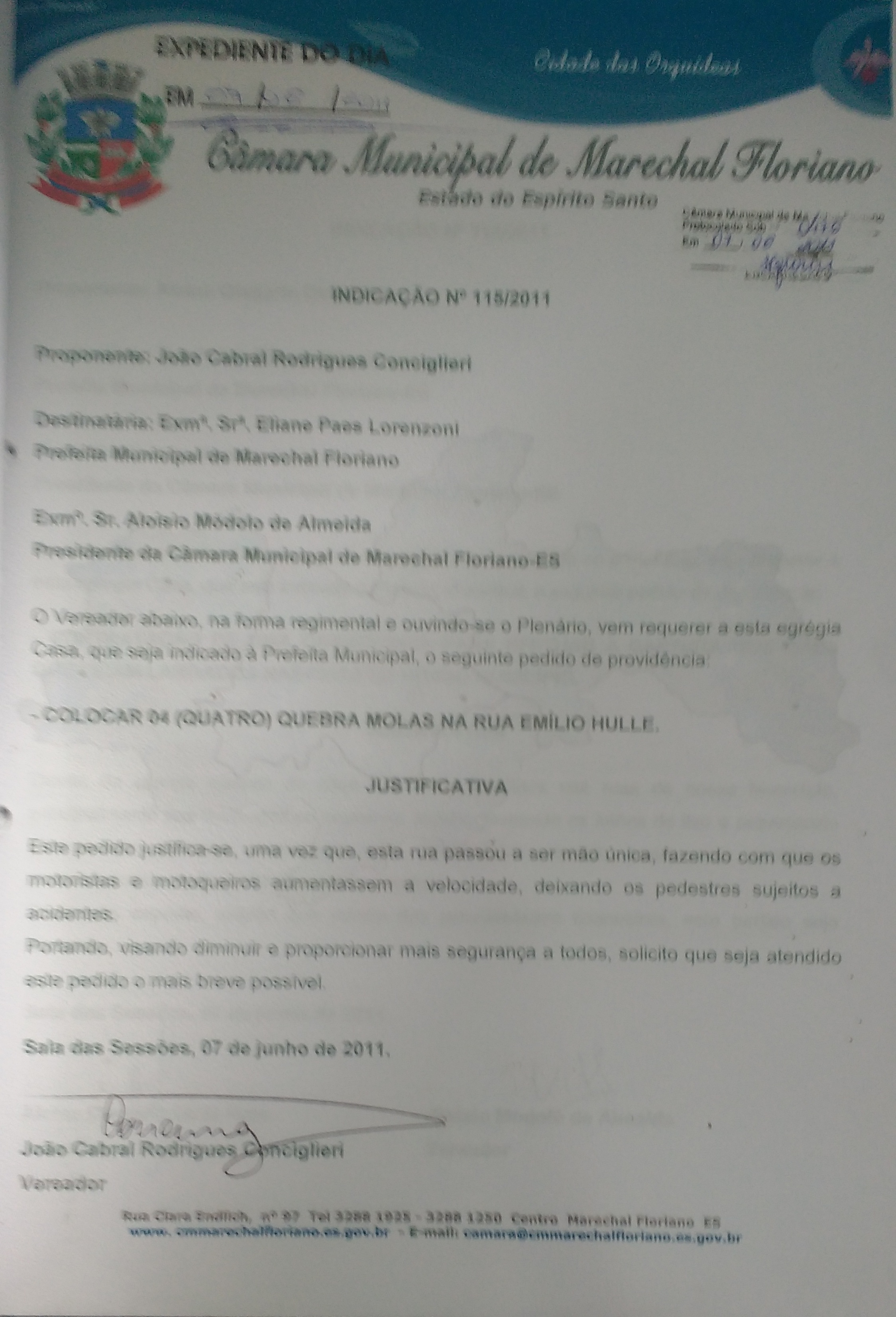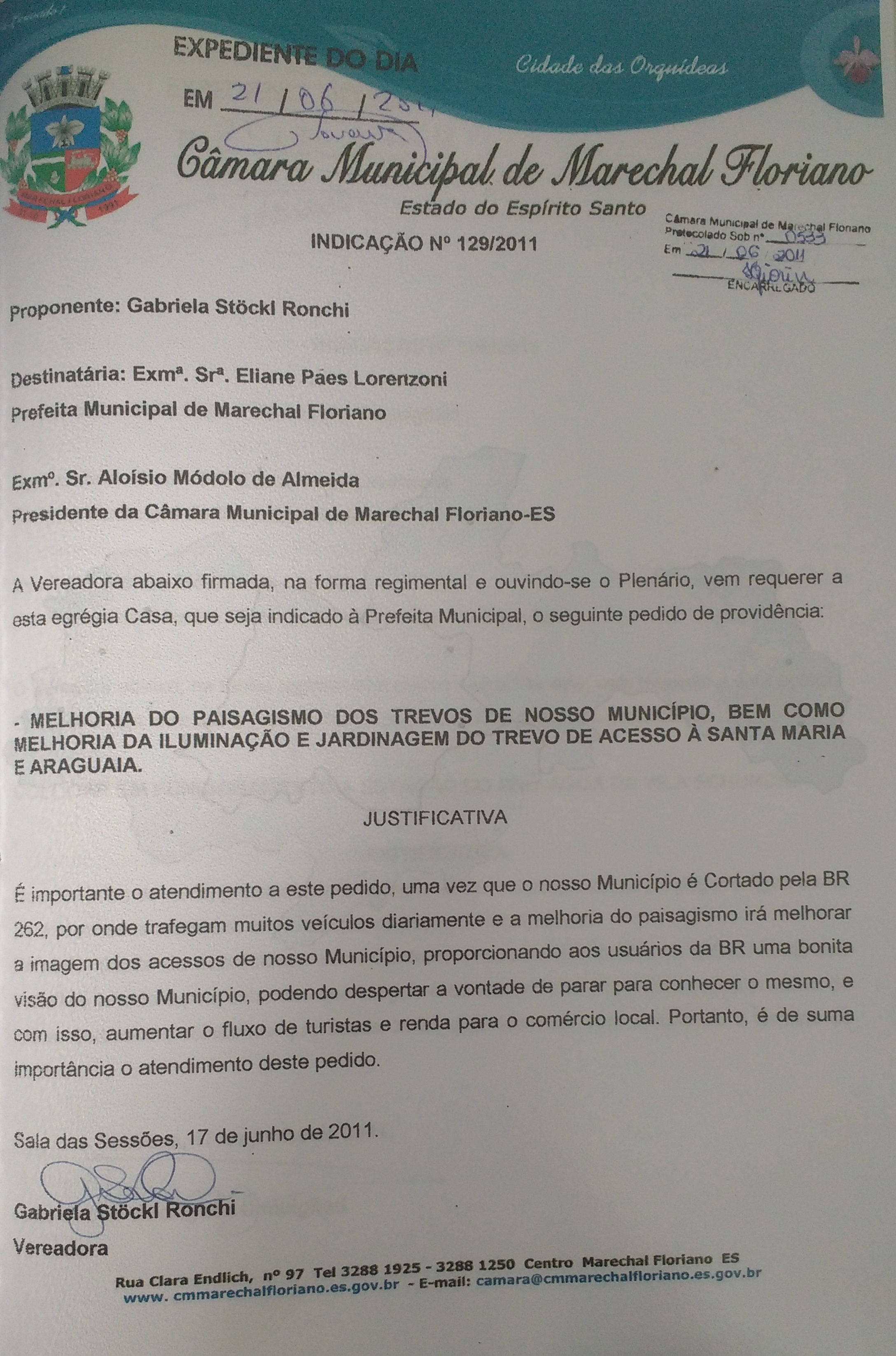 Ementa: QUE SEJA COLOCADA EM PRÁTICA A ELABORAÇÃO E CRIAÇÃO DO HINO DO MUNICÍPIO DE MARECHAL FLORIANO.