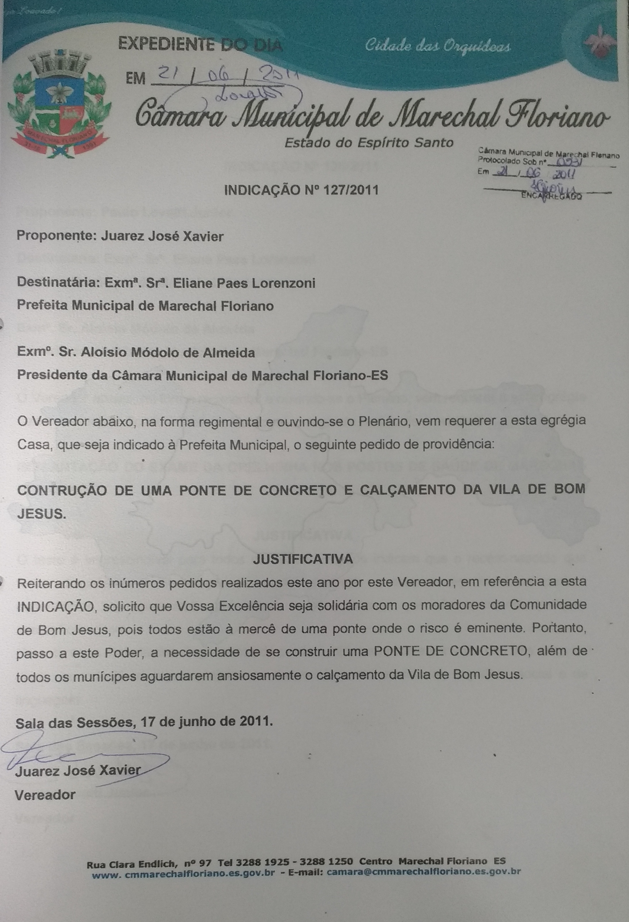 Ementa: CONSTRUÇÃO DE UMA PONTE DE CONCRETO E CALÇAMENTO DA VILA DE BOM JESUS.