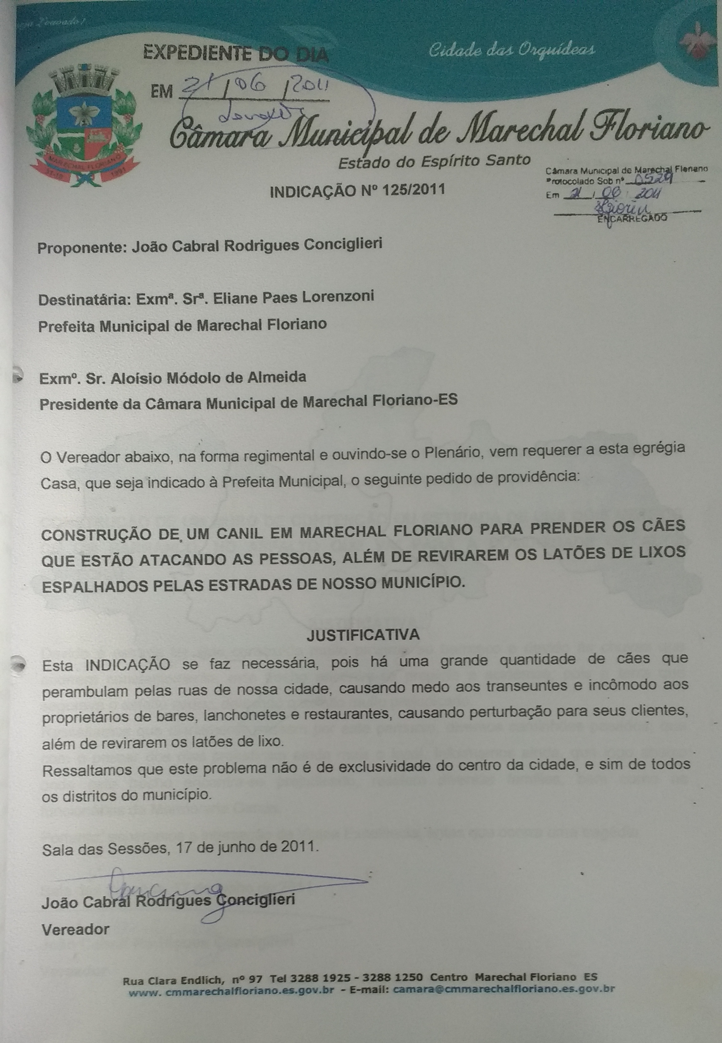 Ementa: CONSTRUÇÃO DE UM CANIL EM MARECHAL FLORIANO PARA PRENDER OS CÃES QUE ESTÃO ATACANDO AS PESSOAS, ALÉM DE REVIRAREM OS LATÕES DE LIXOS ESPALHADOS PELAS ESTRADAS DE NOSSO MUNICÍPIO.