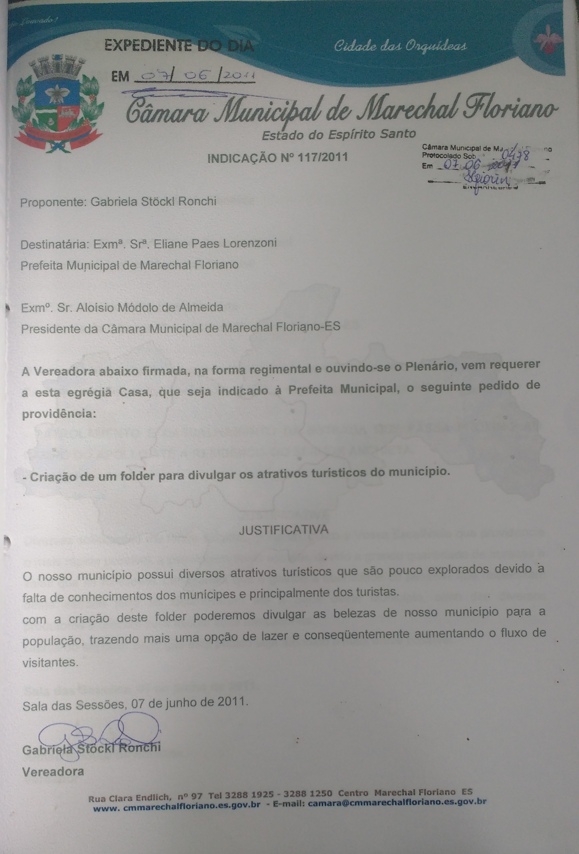 Ementa: CRIAÇÃO DE FÔLDER PARA DIVULGAR OS ATRATIVOS TURÍSTICOS MUNICIPAIS.