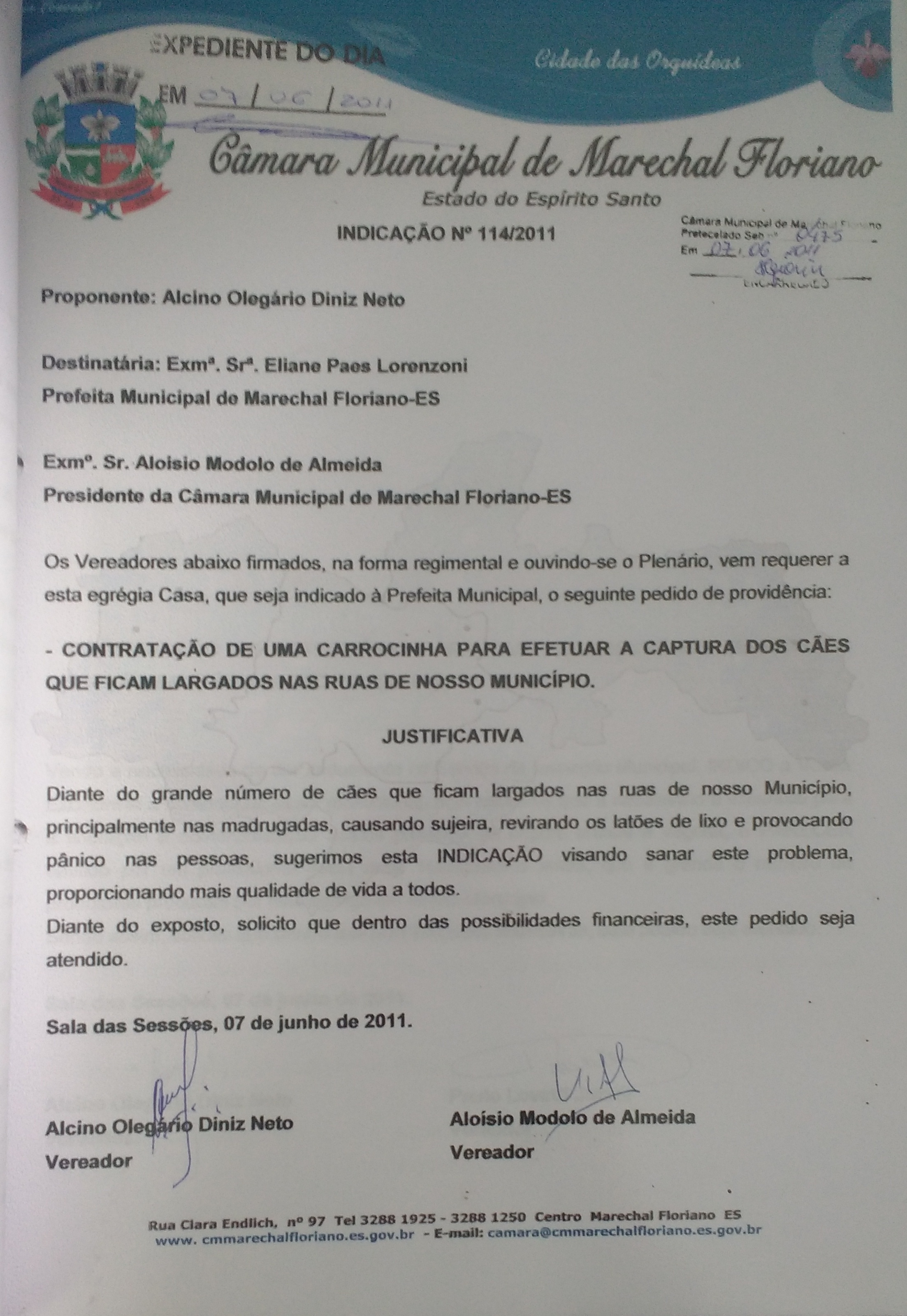 Ementa: CONTRATAÇÃO DE UMA CARROCINHA PARA EFETUAR A CAPTURA DOS CÃES QUE FICAR LARGADOS NAS RUAS DE NOSSO MUNICÍPIO.