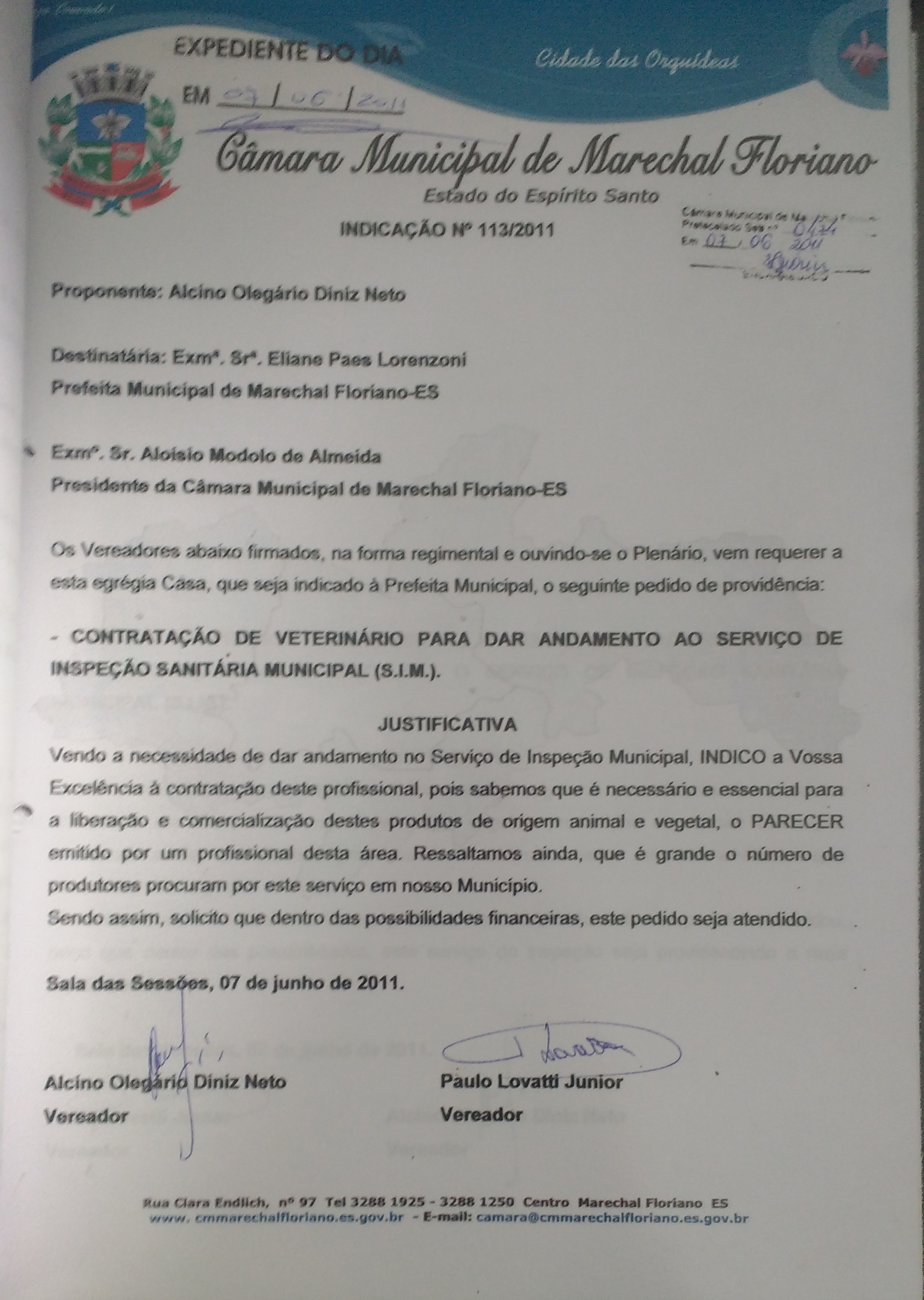 Ementa: CONTRATAÇÃO DE VETERINÁRIO PARA DAR ANDAMENTO AO SERVIÇO DE INSPEÇÃO SANITÁRIA MUNICIPAL (S.I.M.)