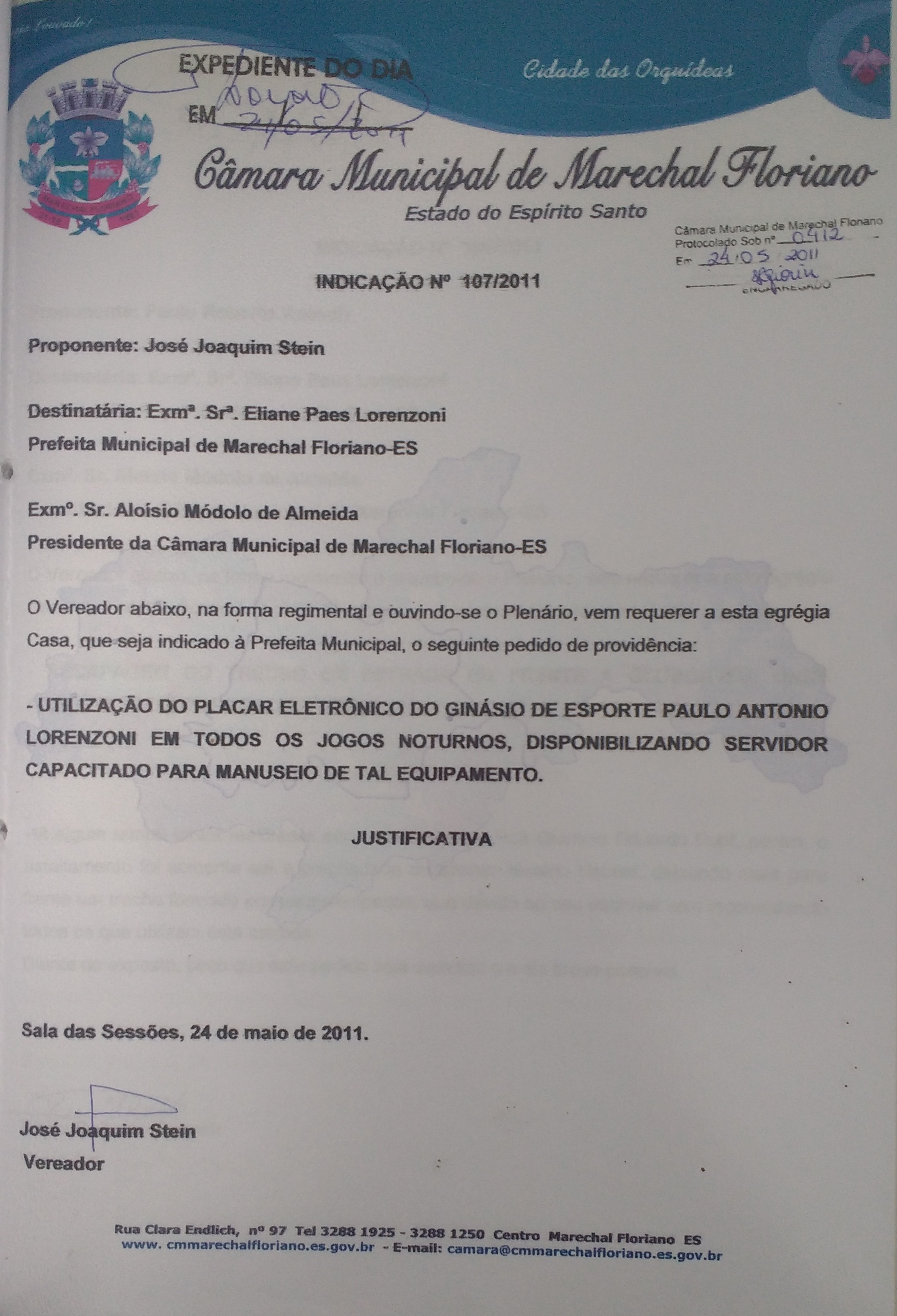 Ementa: UTILIZAÇÃO DO PLACAR ELETRÔNICO NO GINÁSIO DE ESPORTES PAULO ANTONIO LORENZONI, EM TODOS OS JOGOS NOTURNOS, DISPONIBILIZANDO SERVIDOR CAPACITADO PARA MANUSEIO DE TAL EQUIPAMENTO.