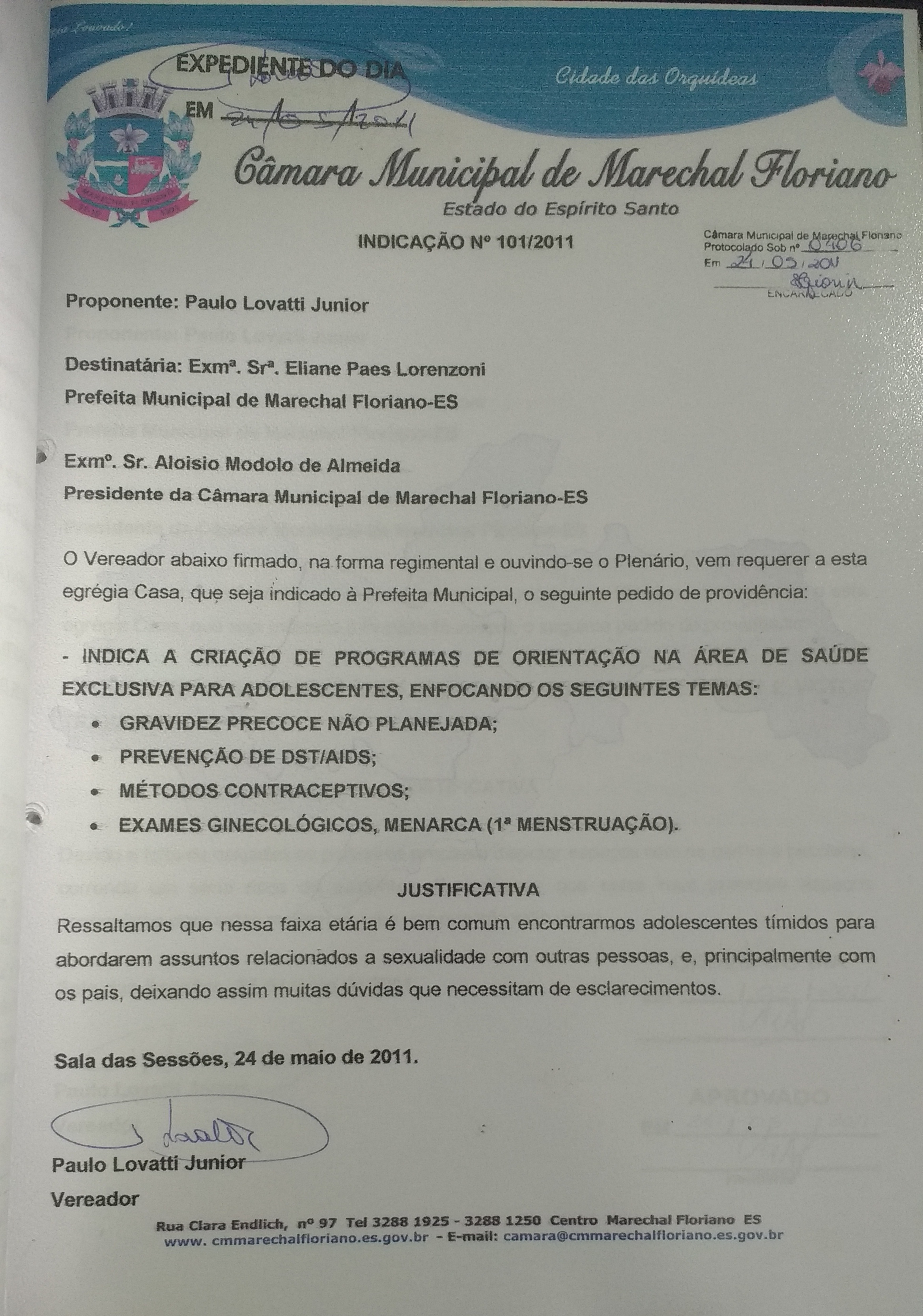 Ementa: INDICAMOS A REALIZAÇÃO DE UM CONVÊNIO ENTRE O PODER EXECUTIVO MUNICIPAL E A CLÍNICA CENTRO MÉDICO, PARA A REALIZAÇÃO DE EXAMES DE MAMOGRAFIA, EM MULHERES QUE RESIDAM NO MUNICÍPIO DE MARECHAL FLORIANO.
