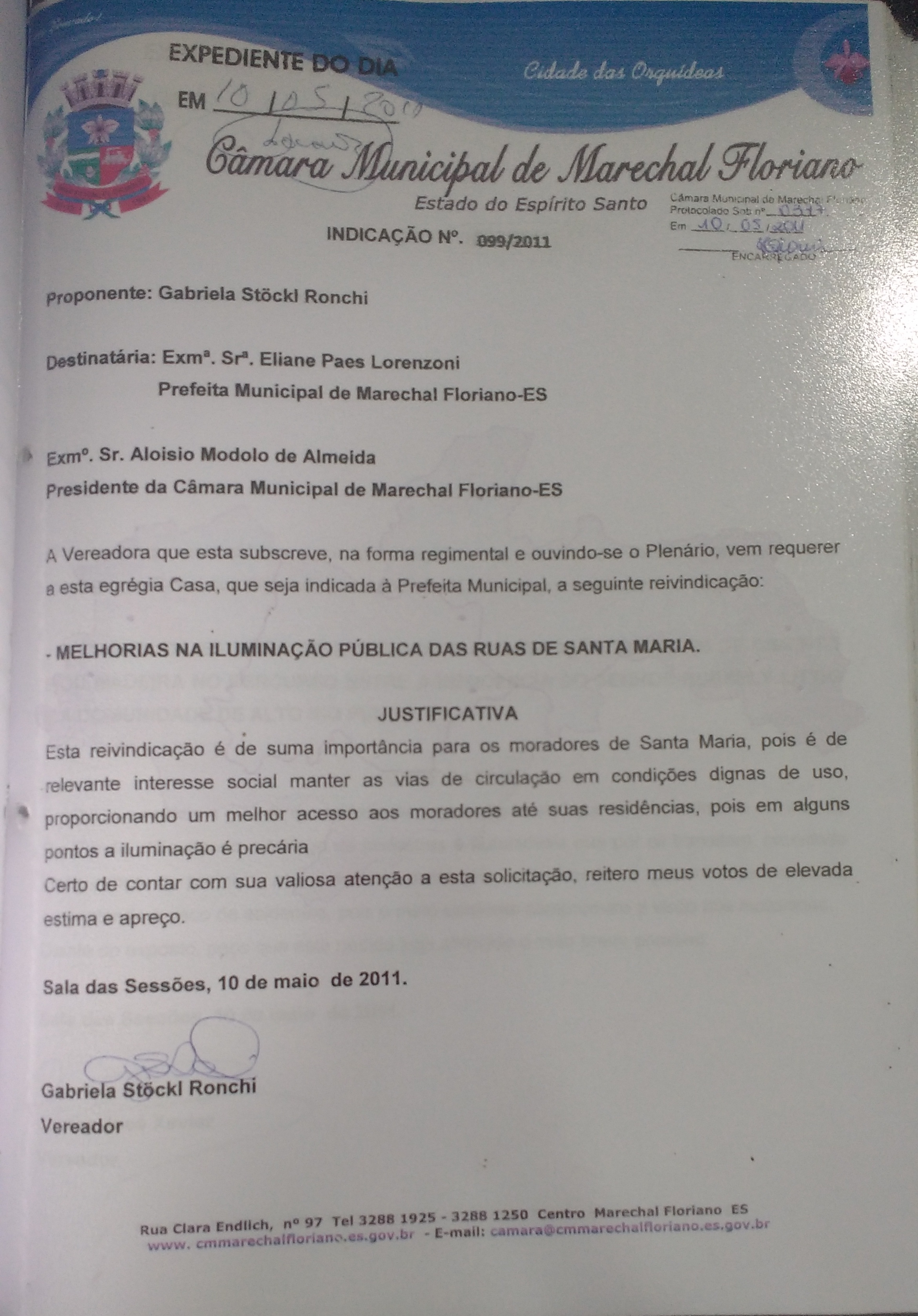 Ementa: MELHORIA NA ILUMINAÇÃO PÚBLICA DAS RUAS DE SANTA MARIA.