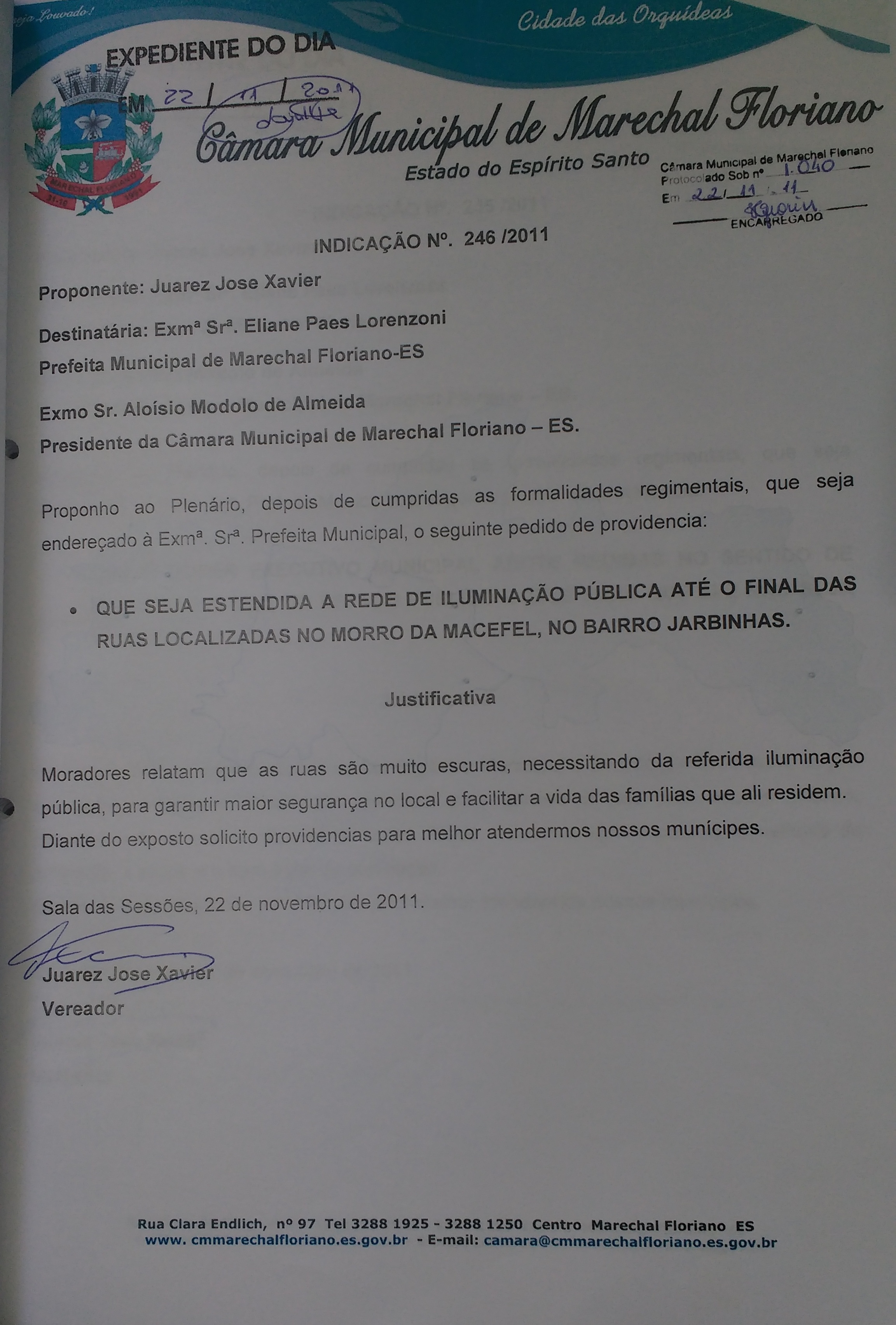Ementa: QUE SEJA ESTENDIDA A REDE DE ILUMINAÇÃO PÚBLICA ATÉ O FINAL DAS RUAS LOCALIZADAS NO MORRO DA MACEFEL, NO BAIRRO JARBINHAS.