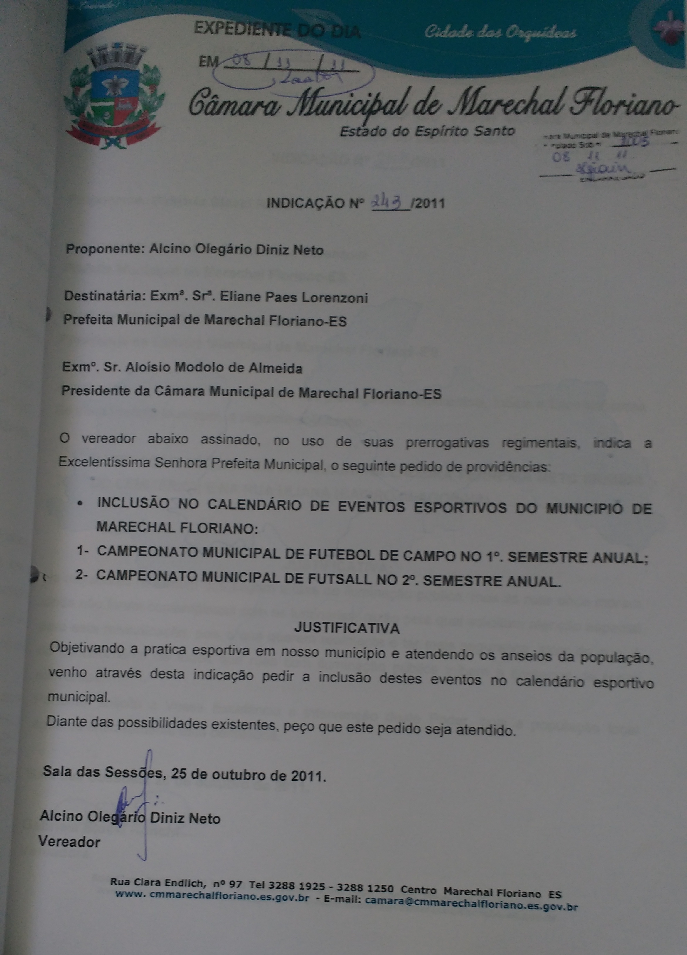 Ementa: -INCLUSÃO NO CALENDÁRIO DE EVENTOS ESPORTIVOS DO MUNICÍPIO DE MARECHAL FLORIANO;