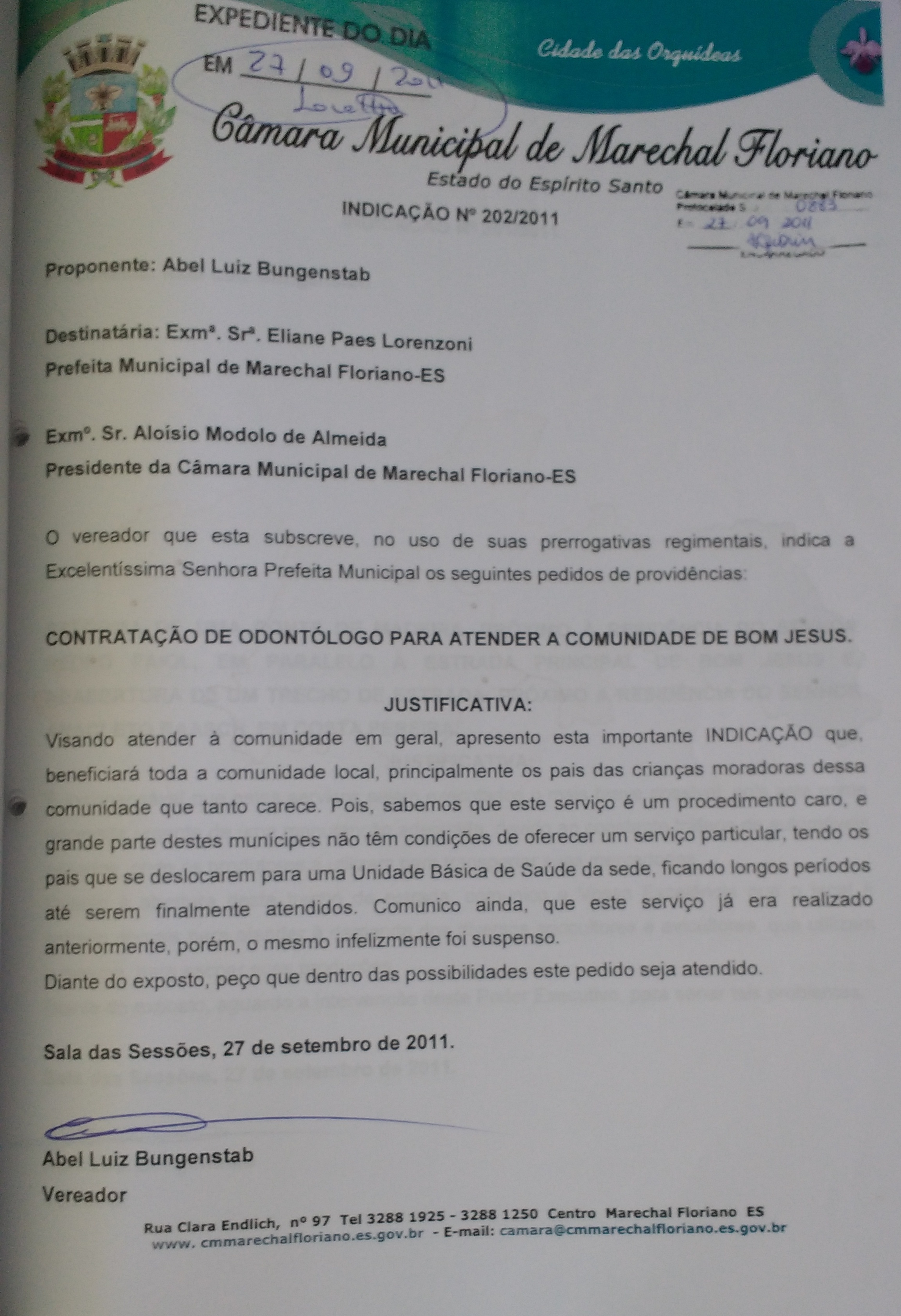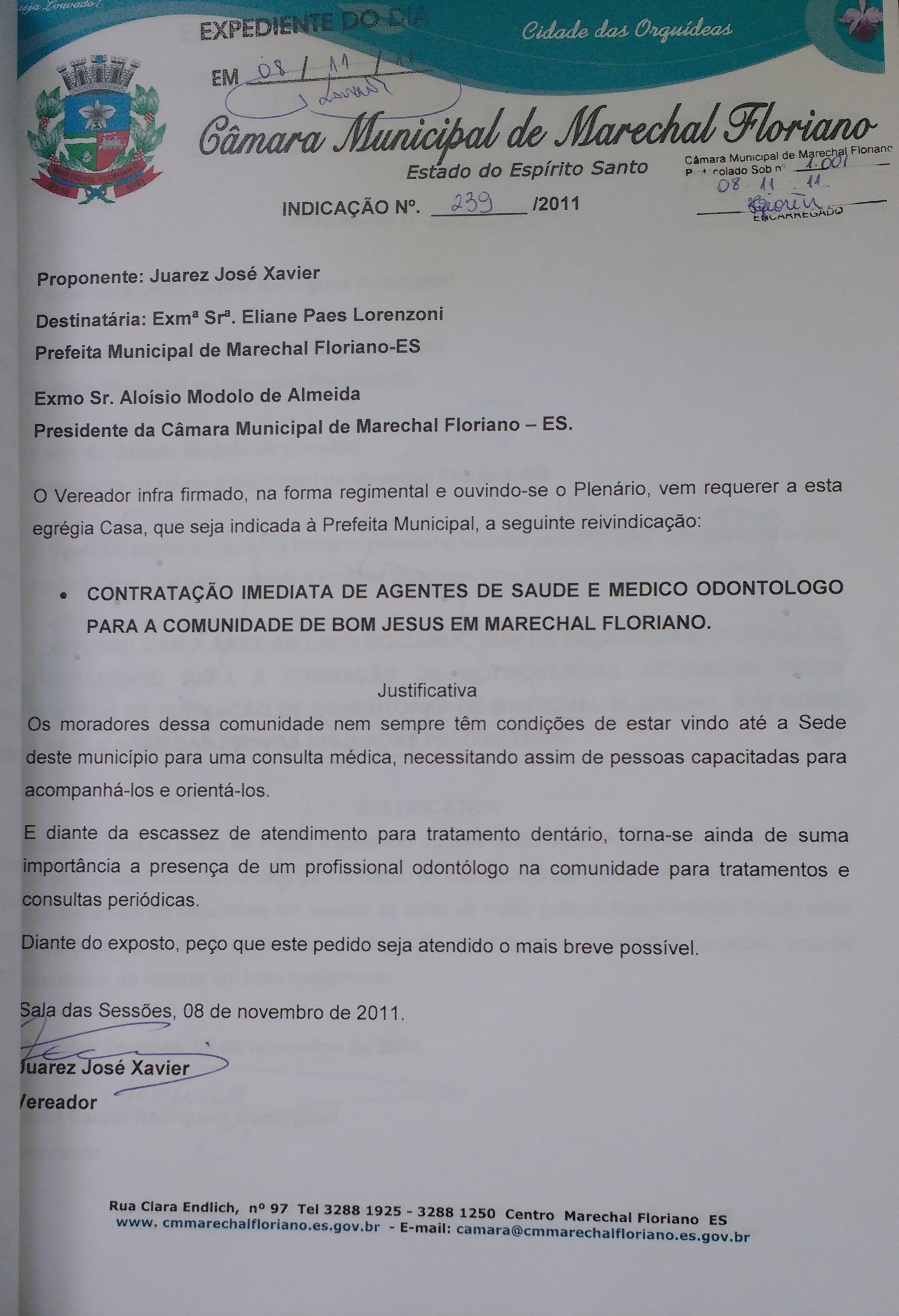 Ementa: CONTRATAÇÃO IMEDIATA DE AGENTES DE SAÚDE E MEDICO ODONTÓLOGO PARA A COMUNIDADE DE BOM JESUS EM MARECHAL FLORIANO.