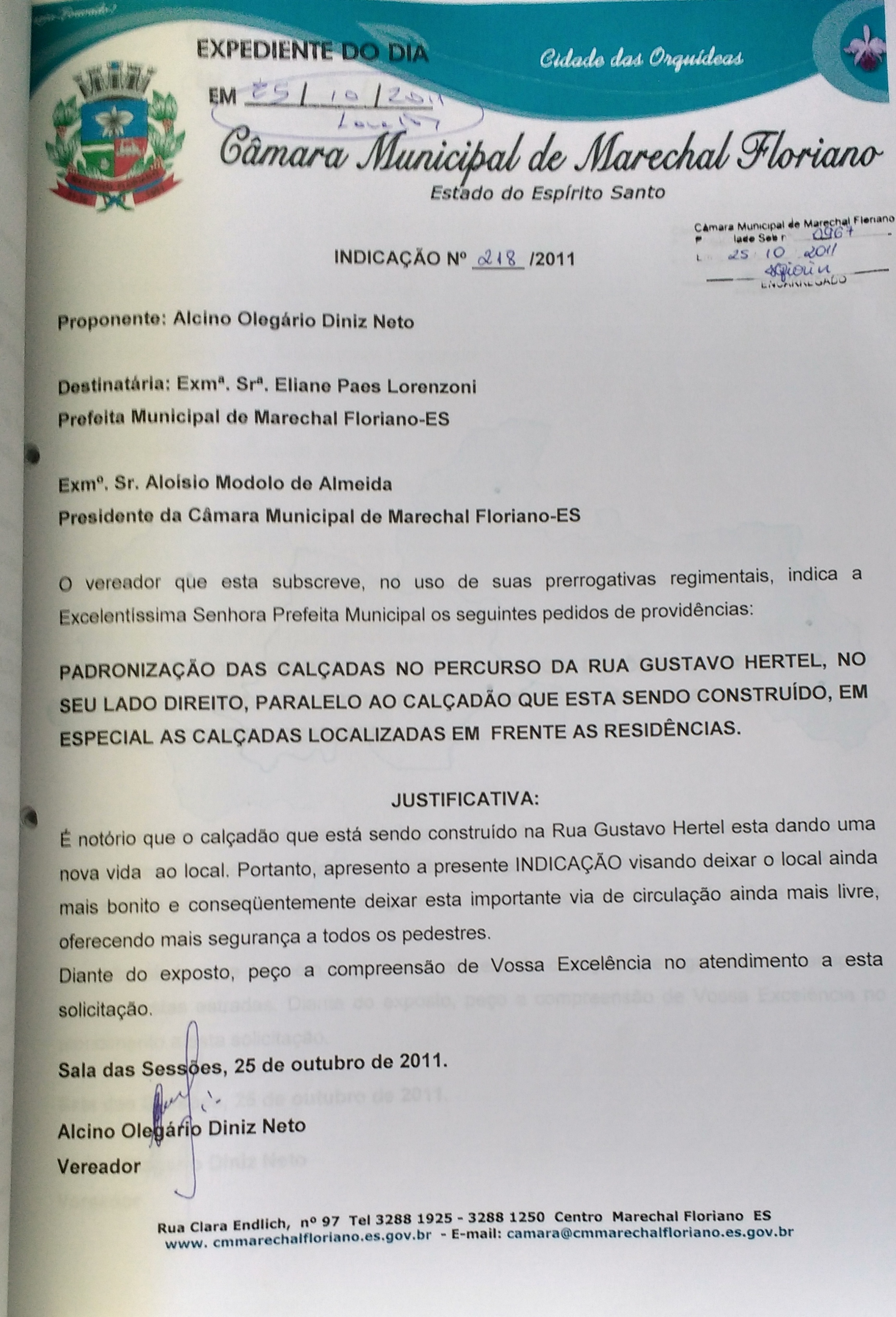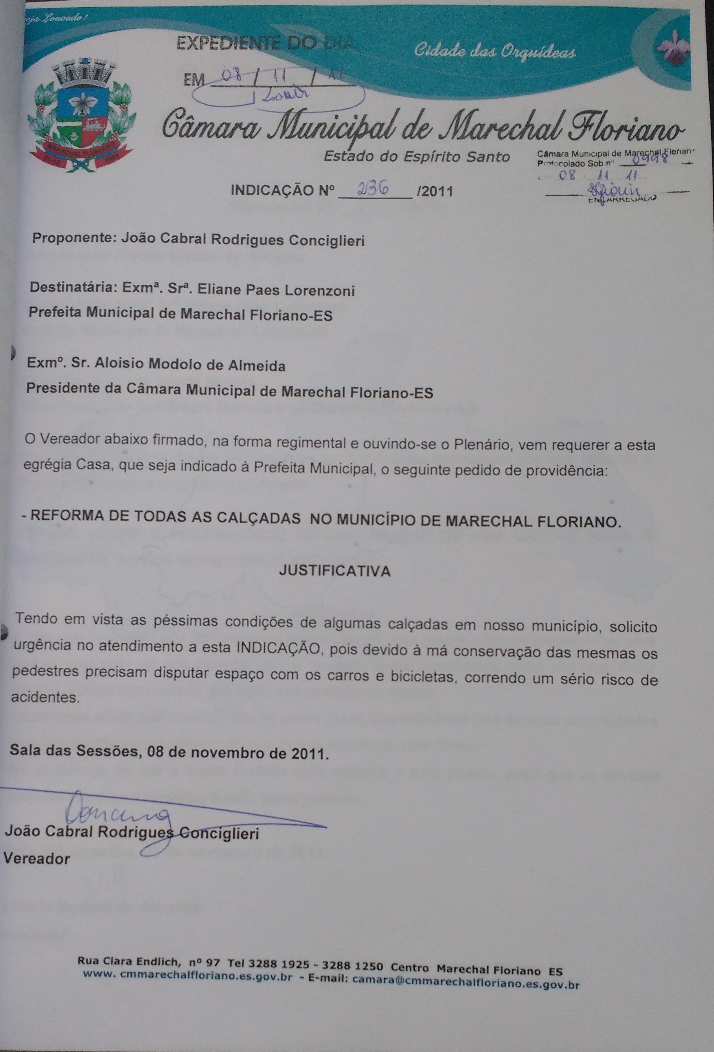 Ementa: REFORMA DE TODAS AS CALÇADAS NO MUNICÍPIO DE MARECHAL FLORIANO.