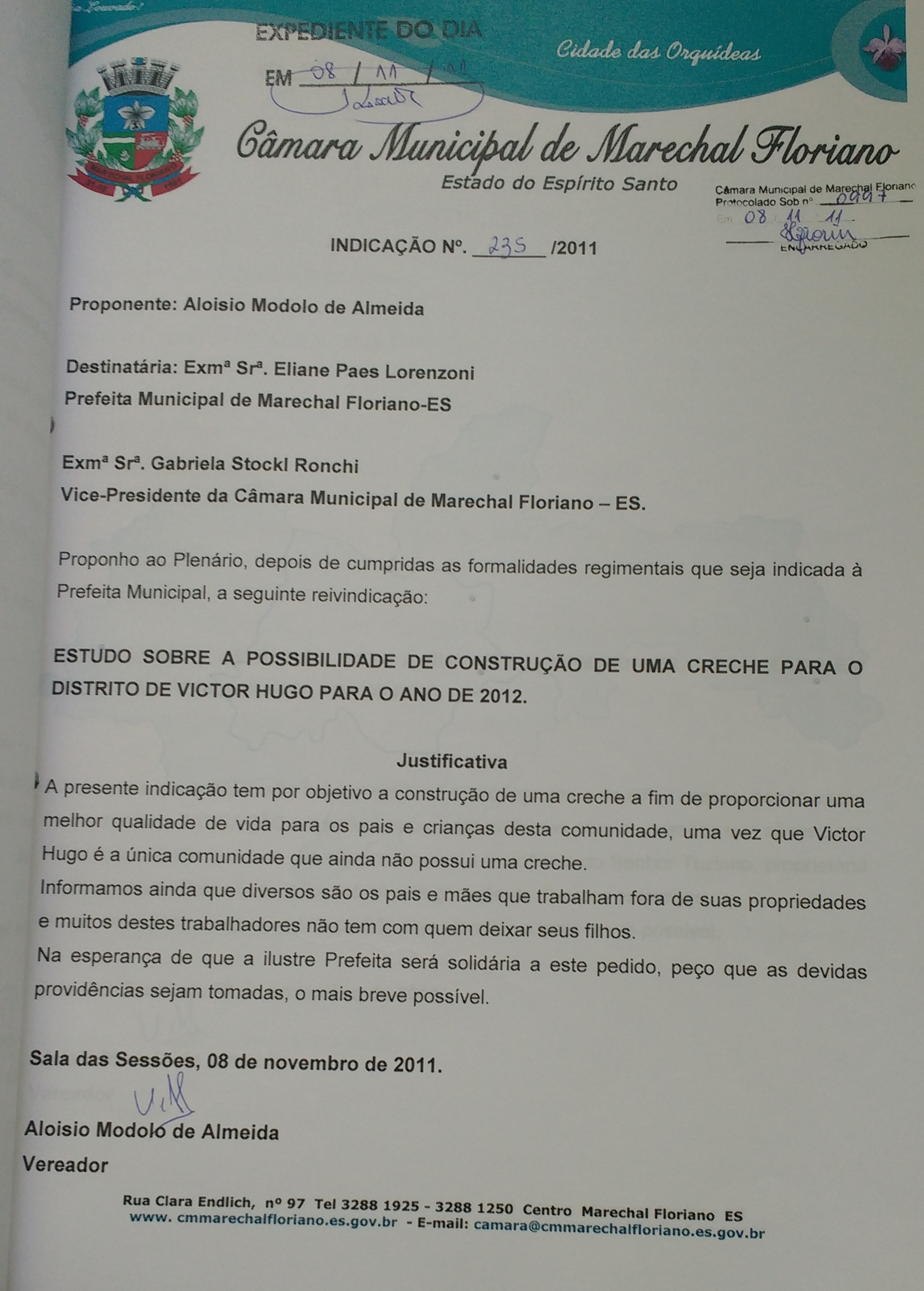 Ementa: ESTUDO SOBRE A POSSIBILIDADE DE CONSTRUÇÃO DE UMA CRECHE PARA O DISTRITO DE VICTOR HUGO.