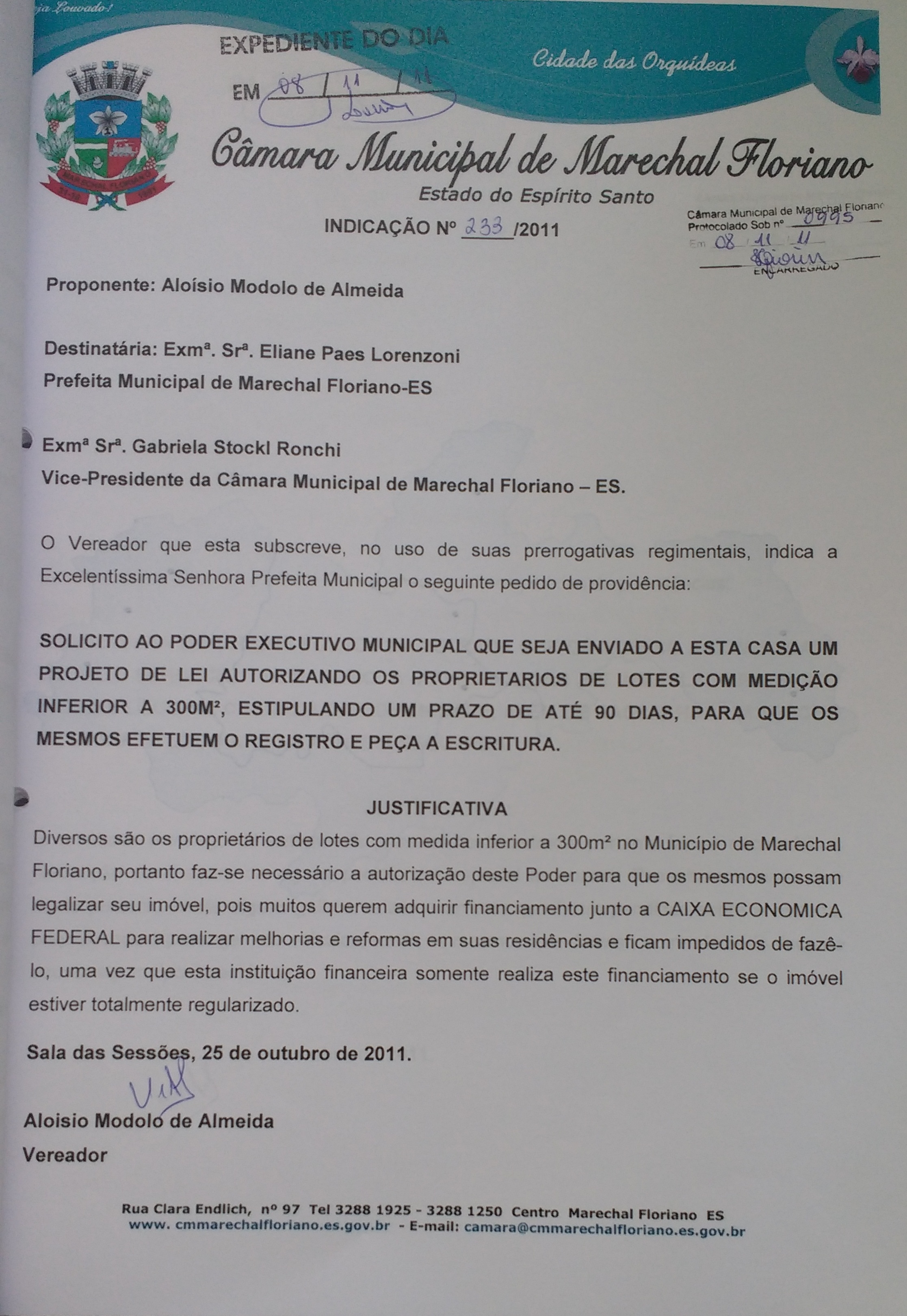 Ementa: SOLICITO AO PODER EXECUTIVO MUNICIPAL QUE SEJA ENVIADO A ESTA CASA UM PROJETO DE LEI AUTORIZANDO OS PROPRIETÁRIOS DE LOTES COM MEDIÇÃO INFERIOR A 300M², ESTIPULANDO UM PRAZO DE ATÉ 90 DIAS, PARA QUE OS MESMOS EFETUEM O REGISTRO E PEÇA A ESCRITURA.