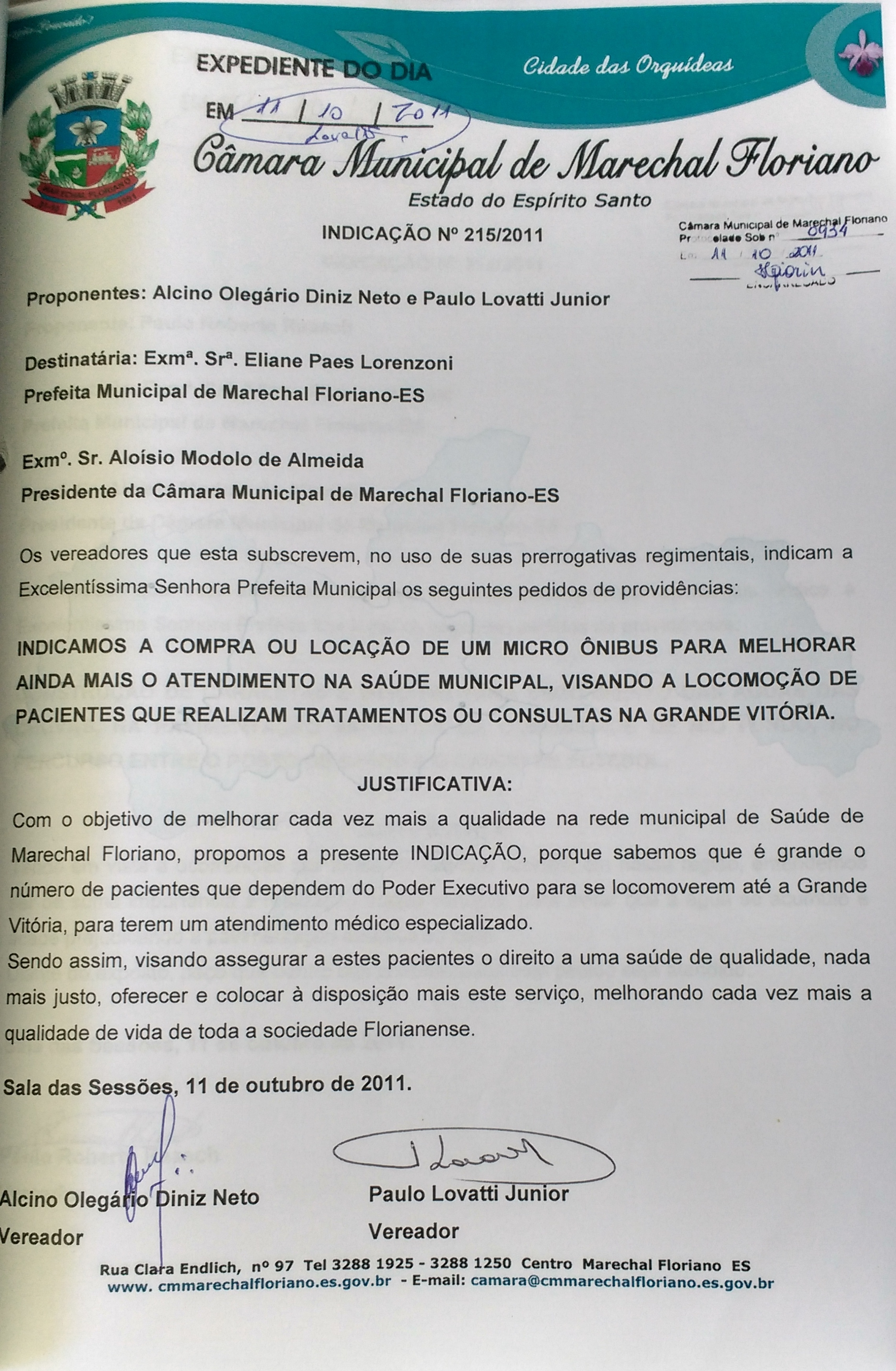 Ementa: INDICAMOS A COMPRA OU LOCAÇÃO DE MICRO ÔNIBUS PARA MELHORAR AINDA MAIS O ATENDIMENTO NA SAÚDE MUNICIPAL,VISANDO A LOCOMOÇÃO DE PACIENTES QUE REALIZAM TRATAMENTOS OU CONSULTAS NA GRANDE VITÓRIA.