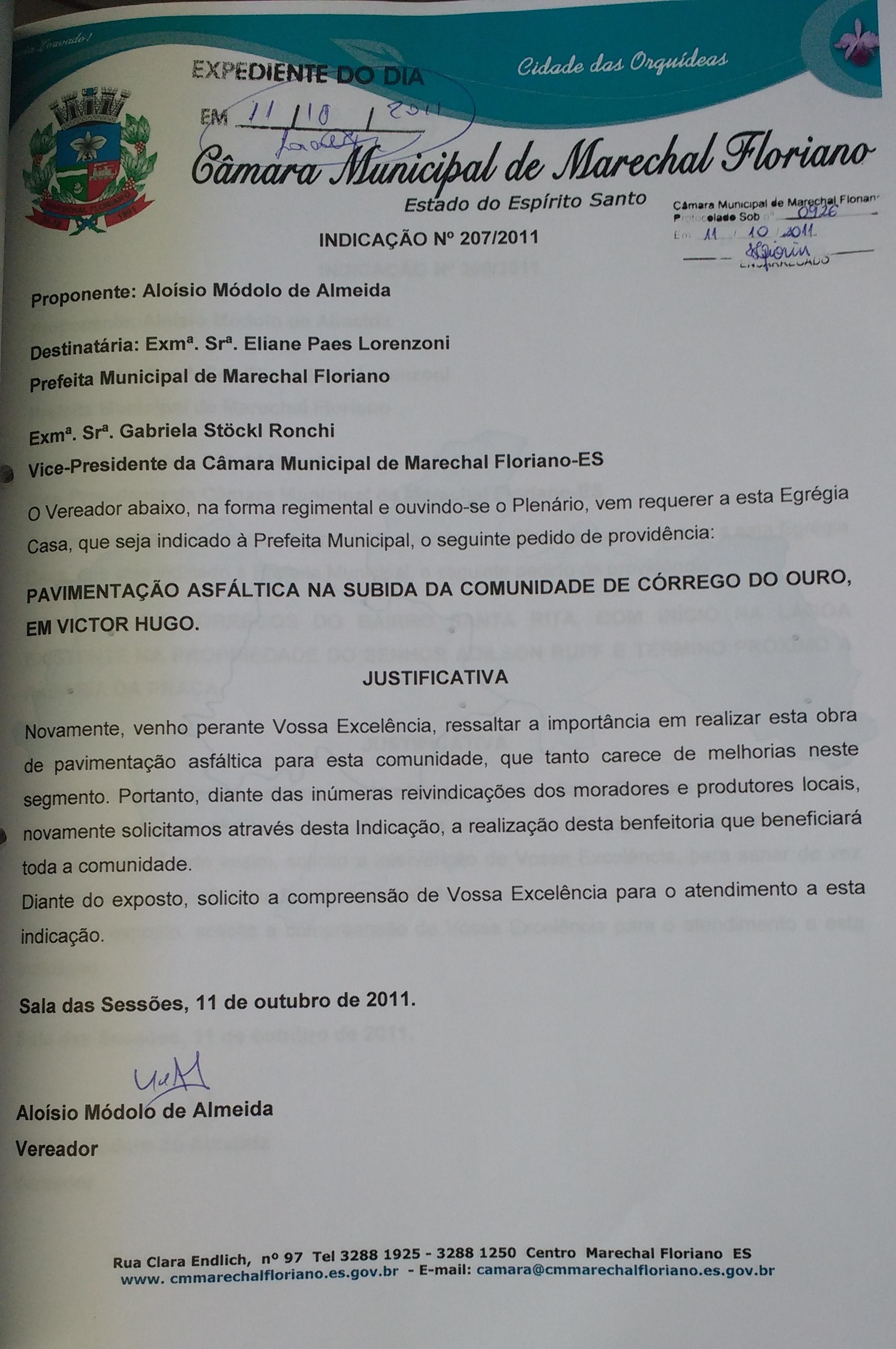 Ementa: PAVIMENTAÇÃO ASFÁLTICA NA SUBIDA DA COMUNIDADE DE CÓRREGO DO OURO, EM VICTOR HUGO.