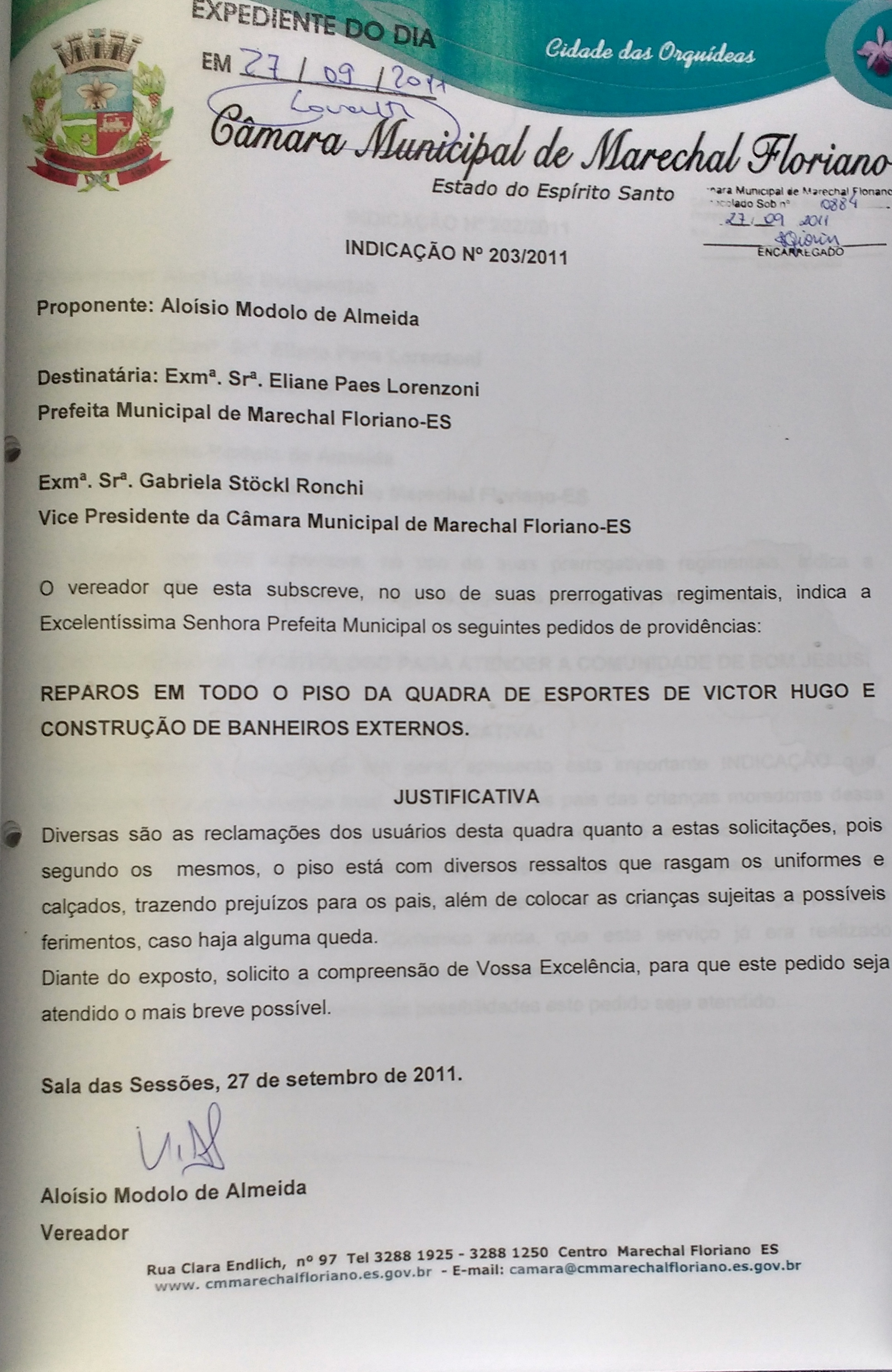 Ementa: CONSTRUÇÃO DE ABRIGOS PARA PASSAGEIROS DE ÔNIBUS EM TODOS OS PONTOS DE PARADA NO INTERIOR DO MUNICÍPIO DE MARECHAL FLORIANO, EM ESPECIAL O DISTRITO DE VICTOR HUGO.