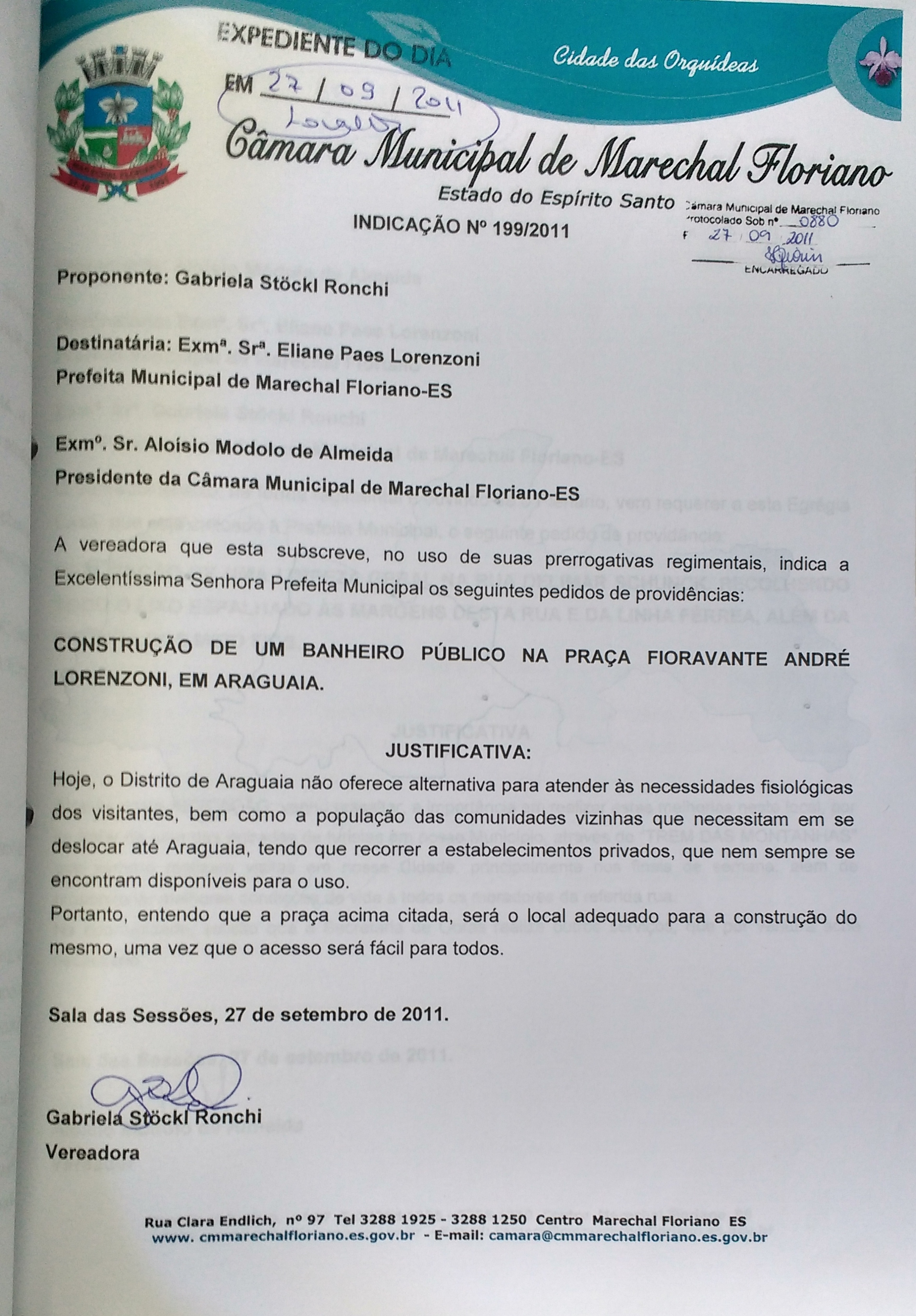 Ementa: CONSTRUÇÃO DE UM BANHEIRO PÚBLICO NA PRAÇA FIORAVANTE ANDRÉ LORENZONI, EM ARAGUAIA.