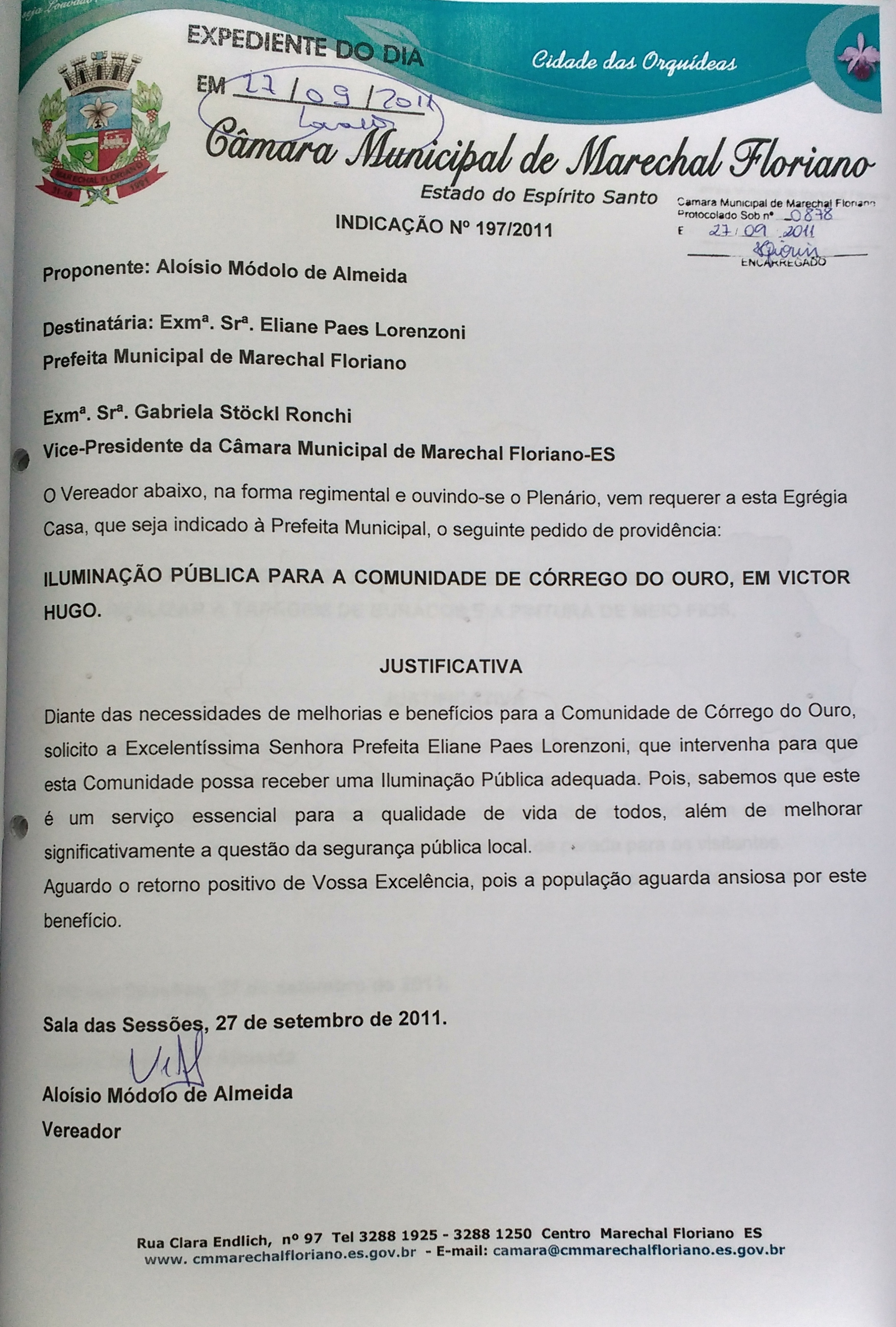 Ementa: ILUMINAÇÃO PUBLICA PARA A COMUNIDADE DE CÓRREGO DO OURO, EM VICTOR HUGO.