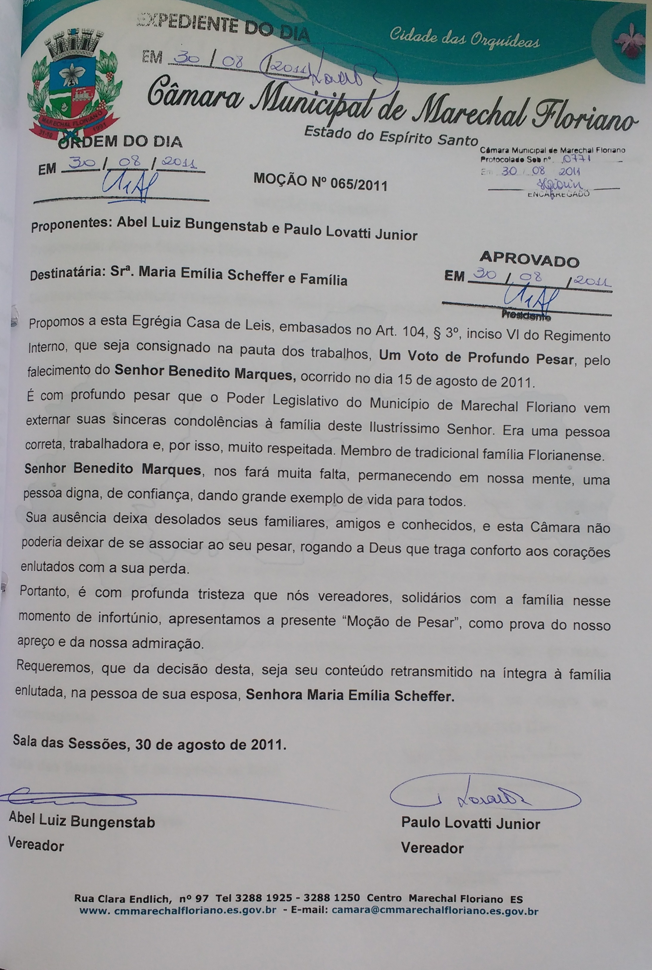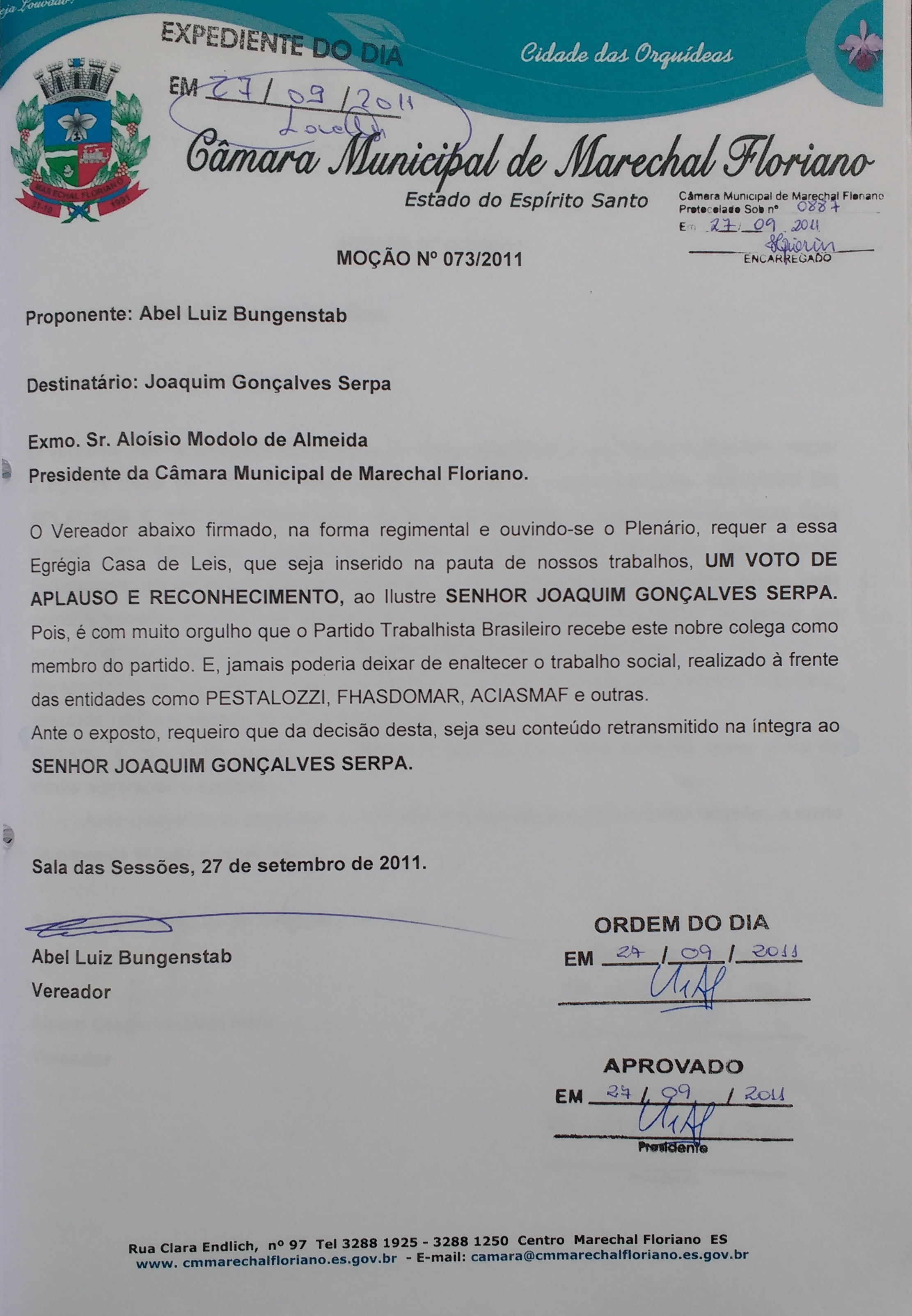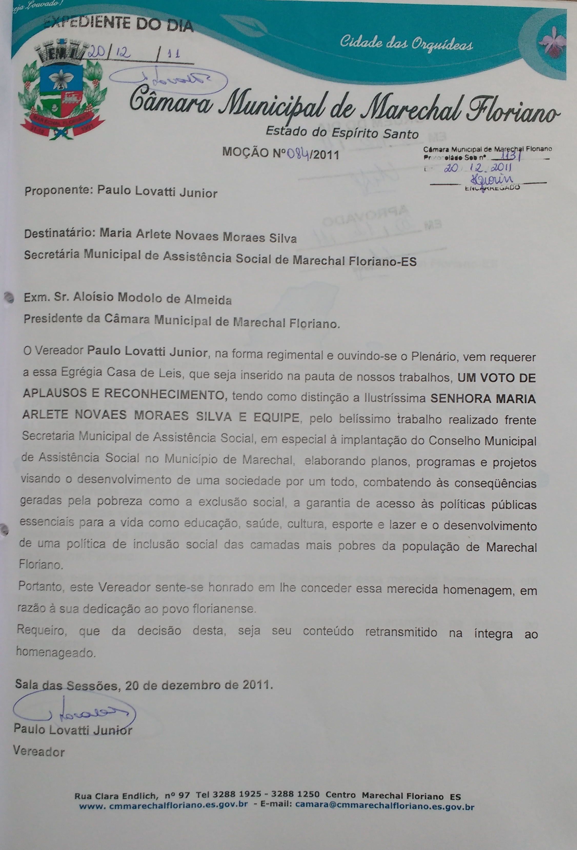 Protocolo: 708/2011, Data Protocolo: